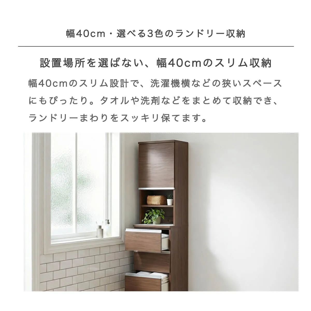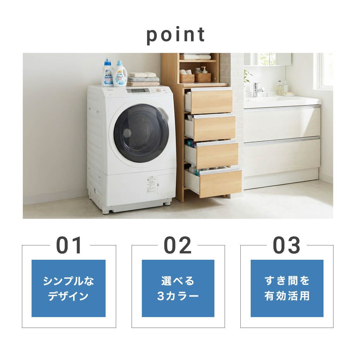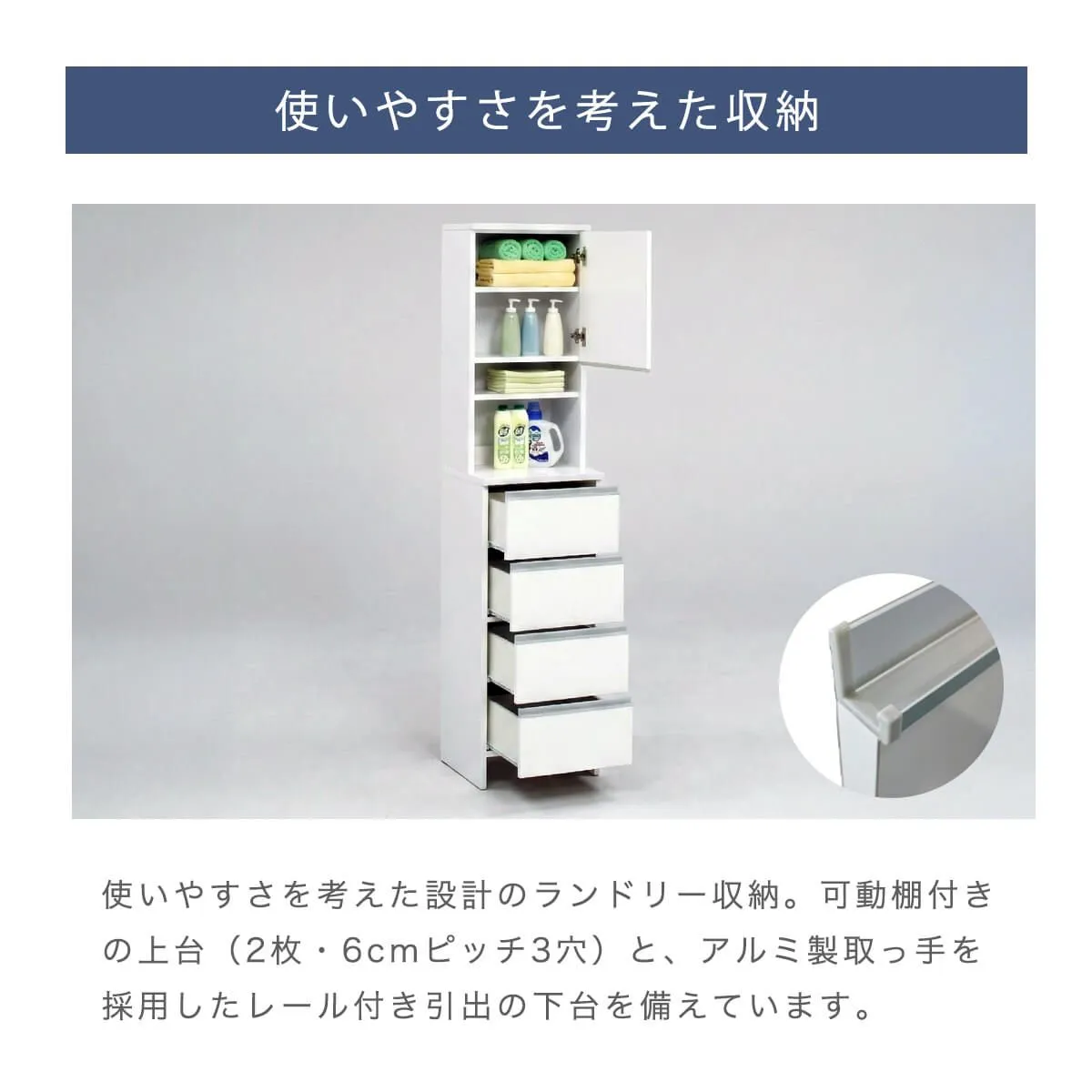 上部分に収納が付いたハイタイプランドリー収納