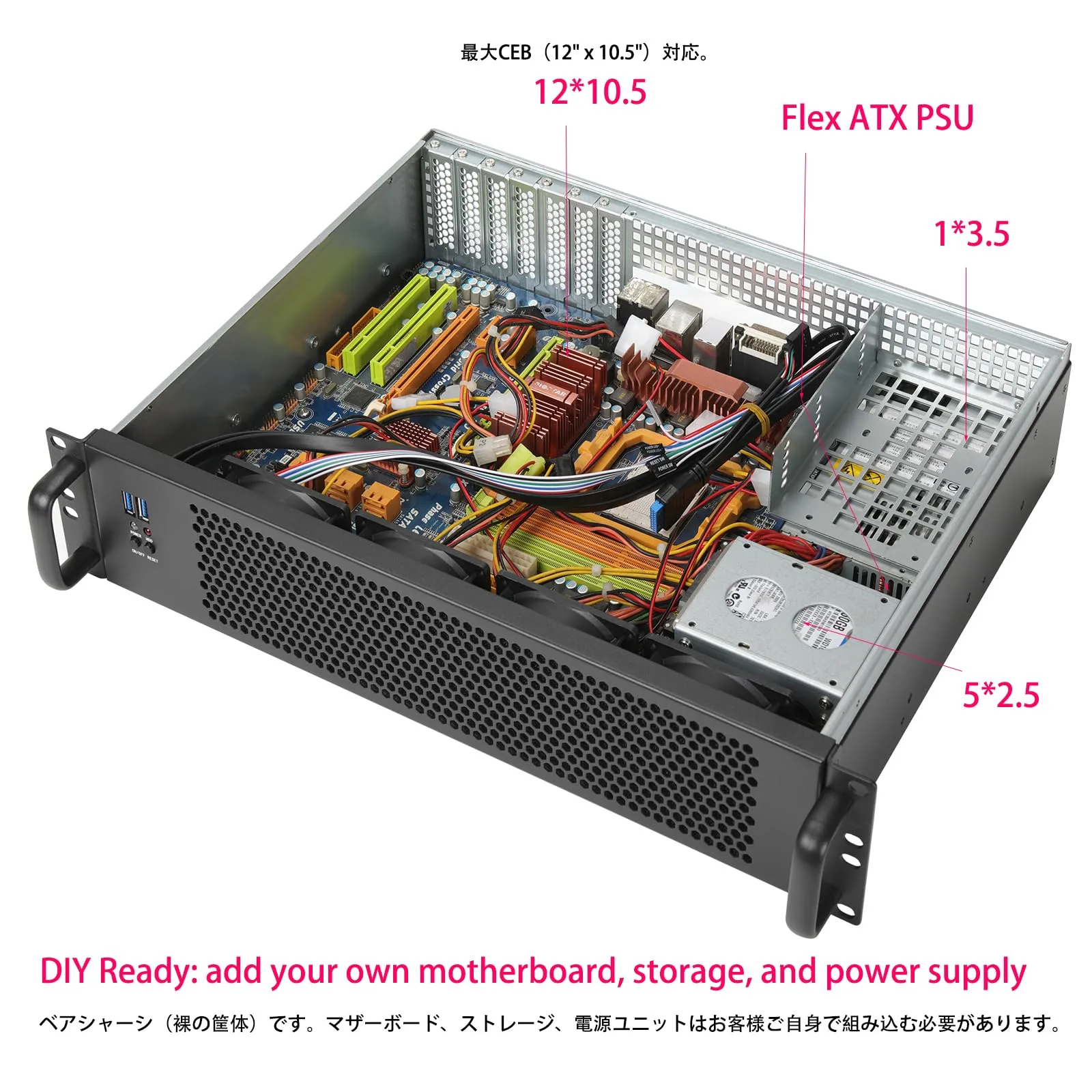 【多様なマザーボードに対応】 CEB / ATX(最大12 × 10.5インチ)、Micro ATX、Mini ITX に対応した2Uサーバーケース。用途に合わせて幅広い構成が可能です。