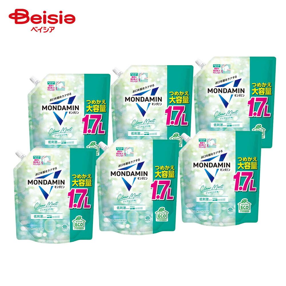 モンダミン クリアミント つめかえ大容量1.7L 6個 | モンダミン クリアミント 詰め替え 大容量 1.7L 洗口液 マウスウォッシュ 口臭 予防 エチケット まとめ買い