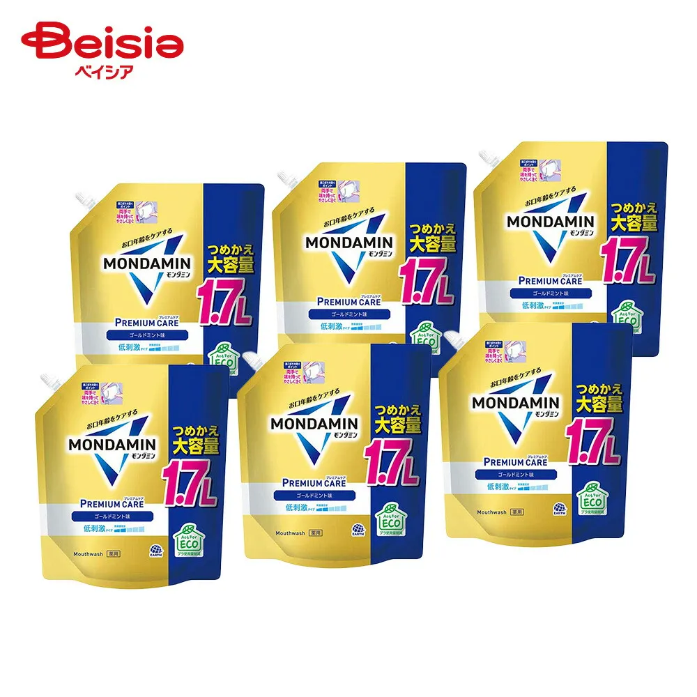 モンダミン プレミアムケア ゴールドミント つめかえ大容量1.7L 6個 | モンダミン プレミアムケア ゴールドミント 詰め替え 大容量 1.7L 洗口液 マウスウォッシュ 口臭 予防 エチケット まとめ買い