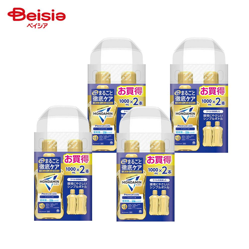 モンダミン プレミアムケア ゴールドミント 1000mL×2本 4個 | モンダミン プレミアムケア ゴールドミント 洗口液 マウスウォッシュ 口臭ケア 口腔ケア 1000mL まとめ買い