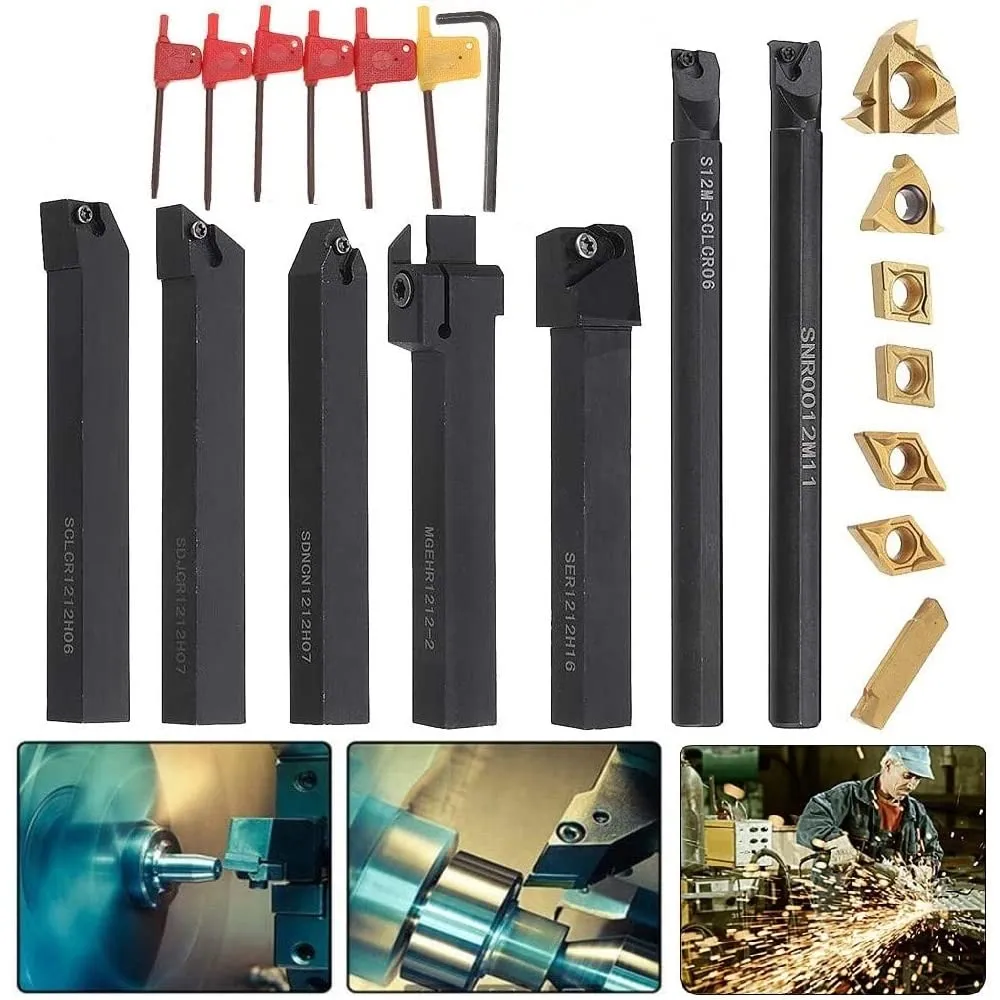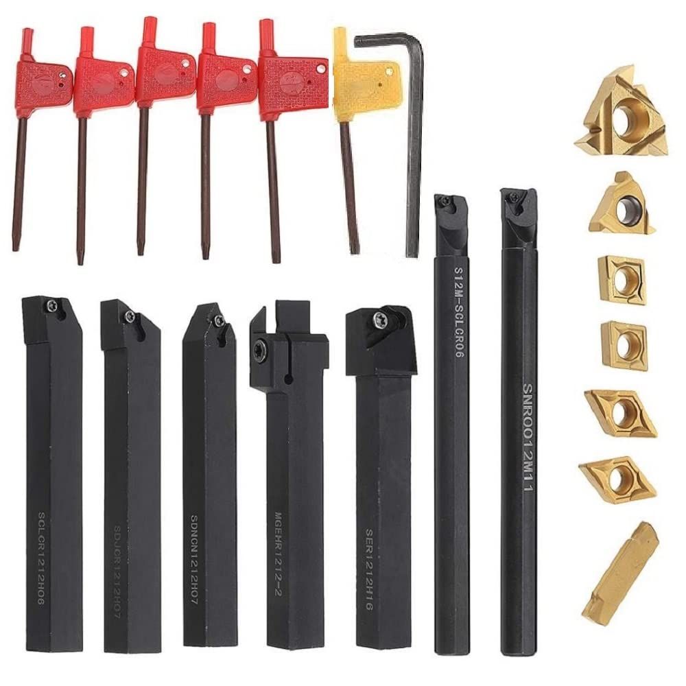 21点セット 旋盤 バイト 12mm 超硬旋盤用ツール 卓上旋盤 バイト 切削バイト 旋削チップ 高硬度フライス 小型 旋削工具 旋盤工具 精密 耐摩耗性 小型旋盤用バイト 卓上旋盤 切削 旋盤用チップ 自作旋盤 (12mm)