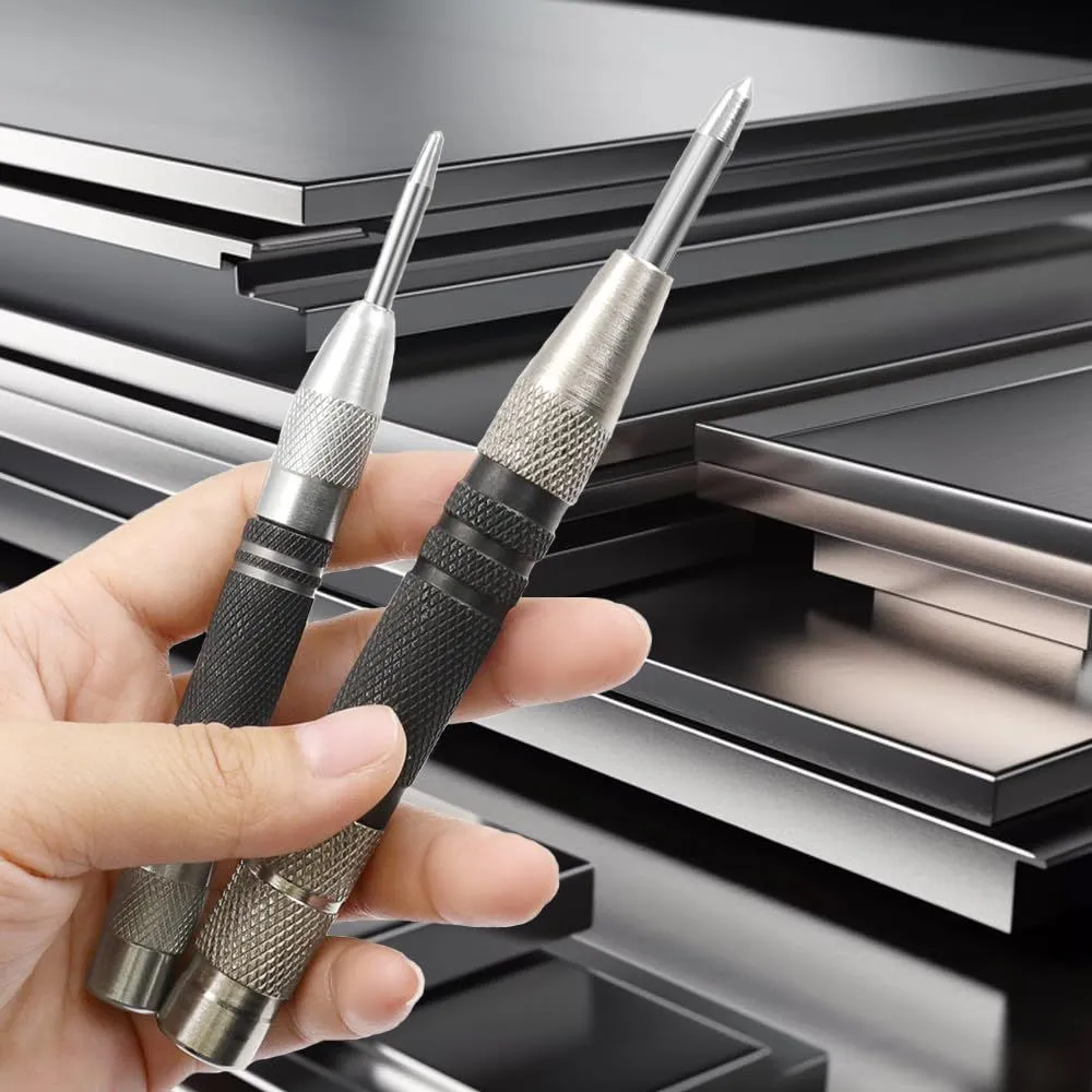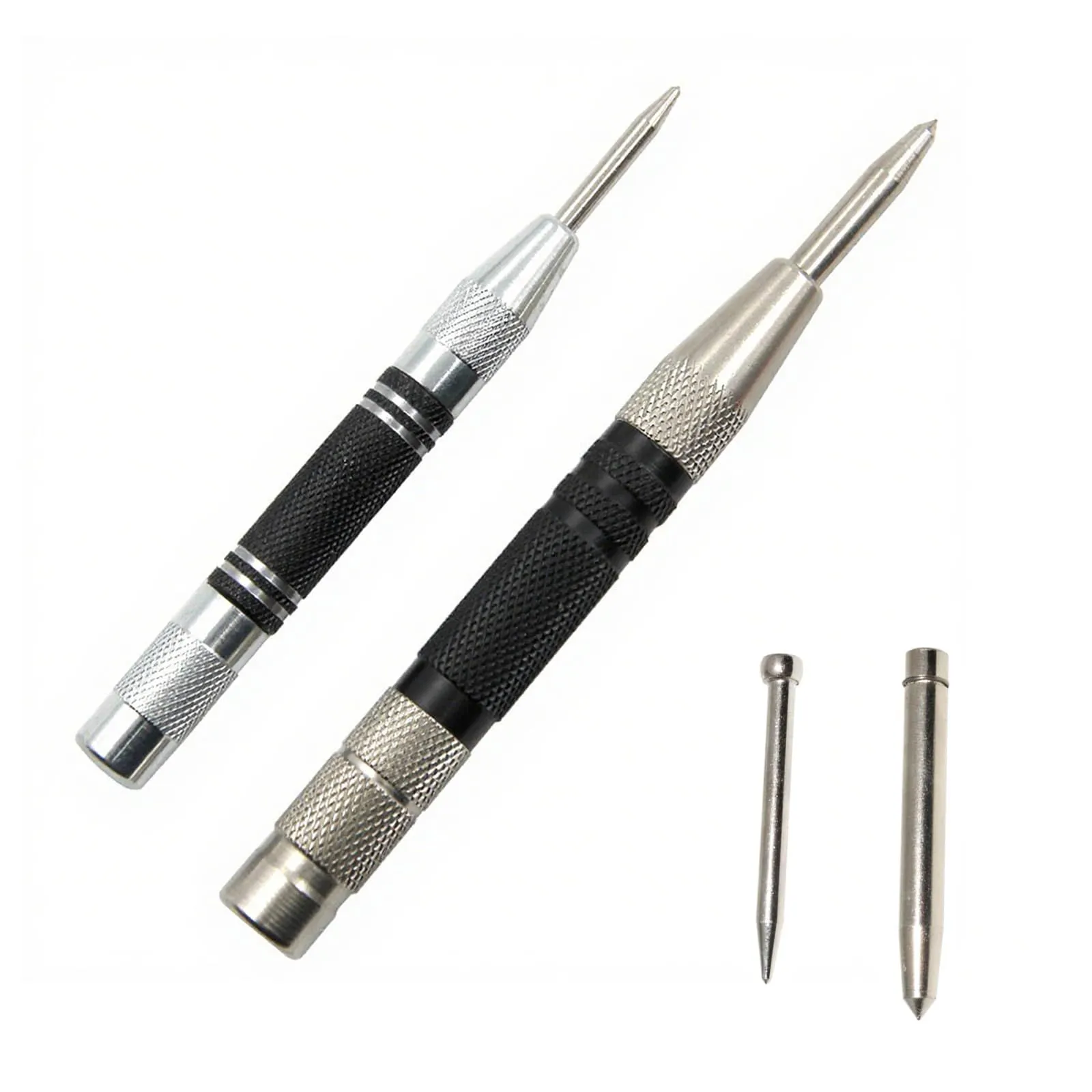 自動センターパンチツール オートセンターポンチ 2個セット センターパンチ付き ハンマー不要 ドリル下穴あけに 超硬自動ポンチ オートポンチ 鉄工用品 木材適用