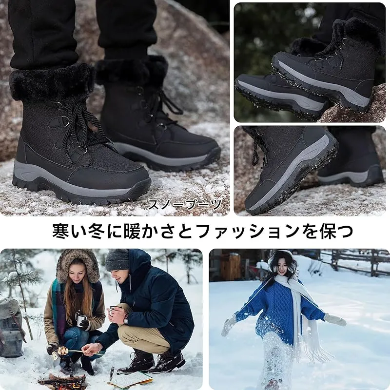 [kepglow] スノーブーツ メンズ レディース 撥水加工 防寒 冬ブーツ 軽量 滑り止め アウトドア 通学 コンパクト 収納 便利 1