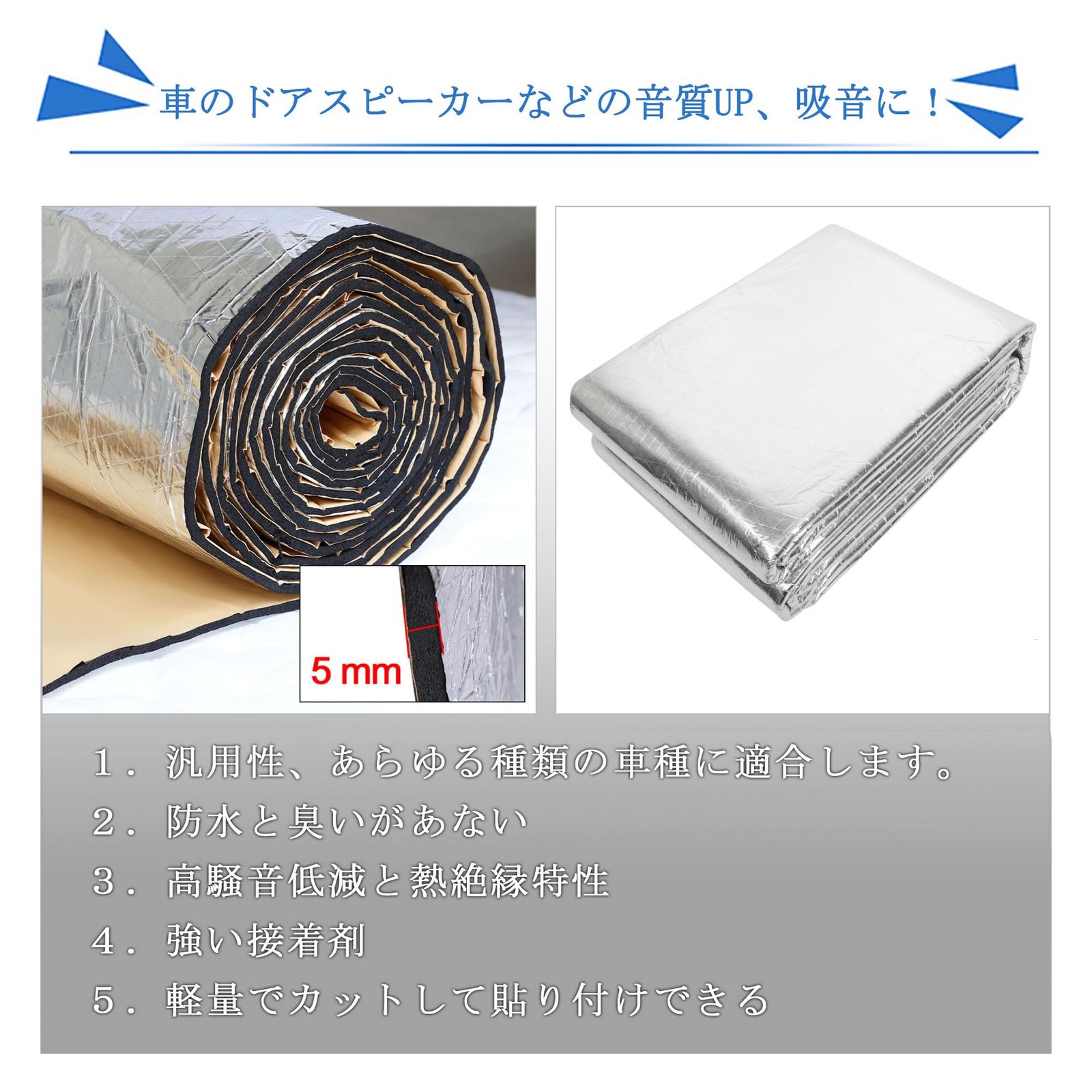 【防音性】本製品は優れた防音性能を持っています!1.ロードノイズを抑えます.2.雨音やエンジン音、風切り音、ビビリ・きしみ音、その他様々運転中に車から発生するノイズを吸収します.3.スピーカー音質の向上させます.
