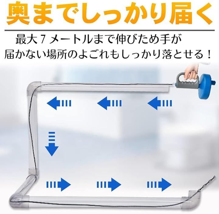 ロングワイヤーで奥の奥まで掃除可能なため、月に1度や半年に1度の排水管の掃除にお勧め。