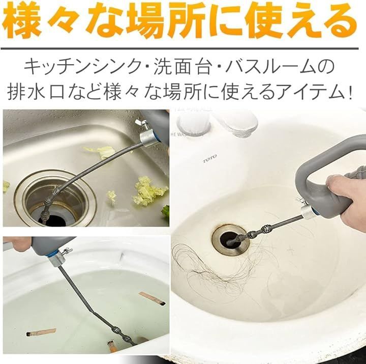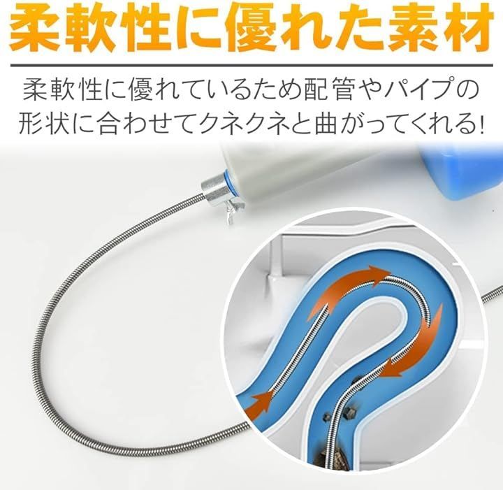 ワイヤータイプなので排水管に沿って変形するため、奥まで行き届き詰まりの原因を取り除きます。