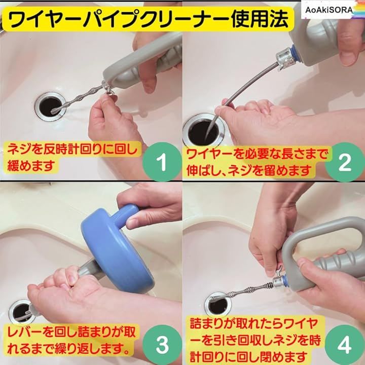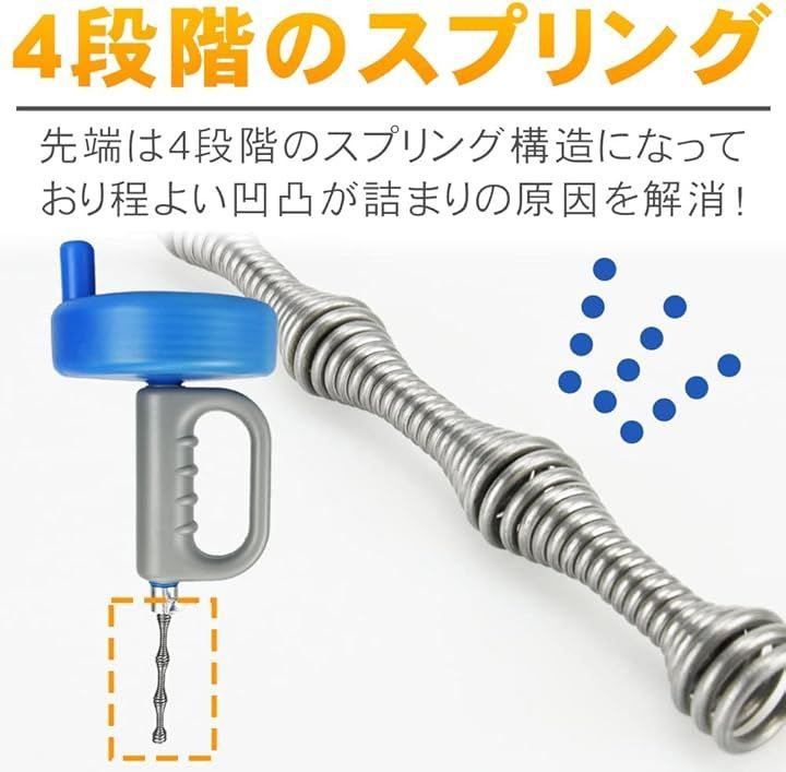 *物理的に詰まりの原因を除去。* 排水管に詰まった髪の毛やゴミを簡単に除去するパイプクリーナーです。