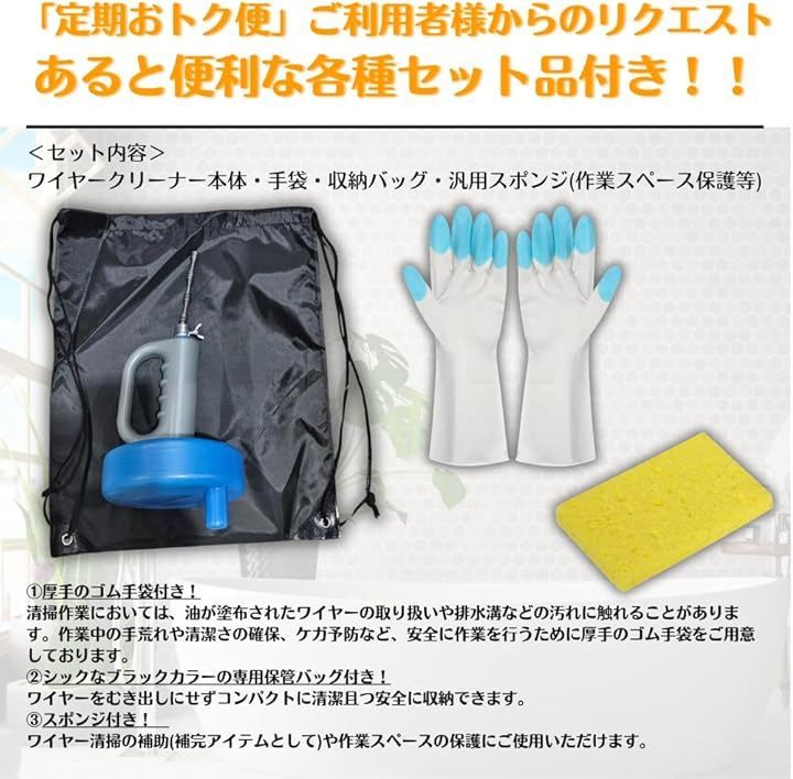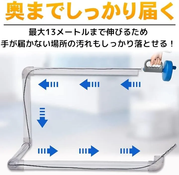 ロングワイヤーで奥の奥まで掃除可能なため、月に1度や半年に1度の排水管の掃除にお勧め。