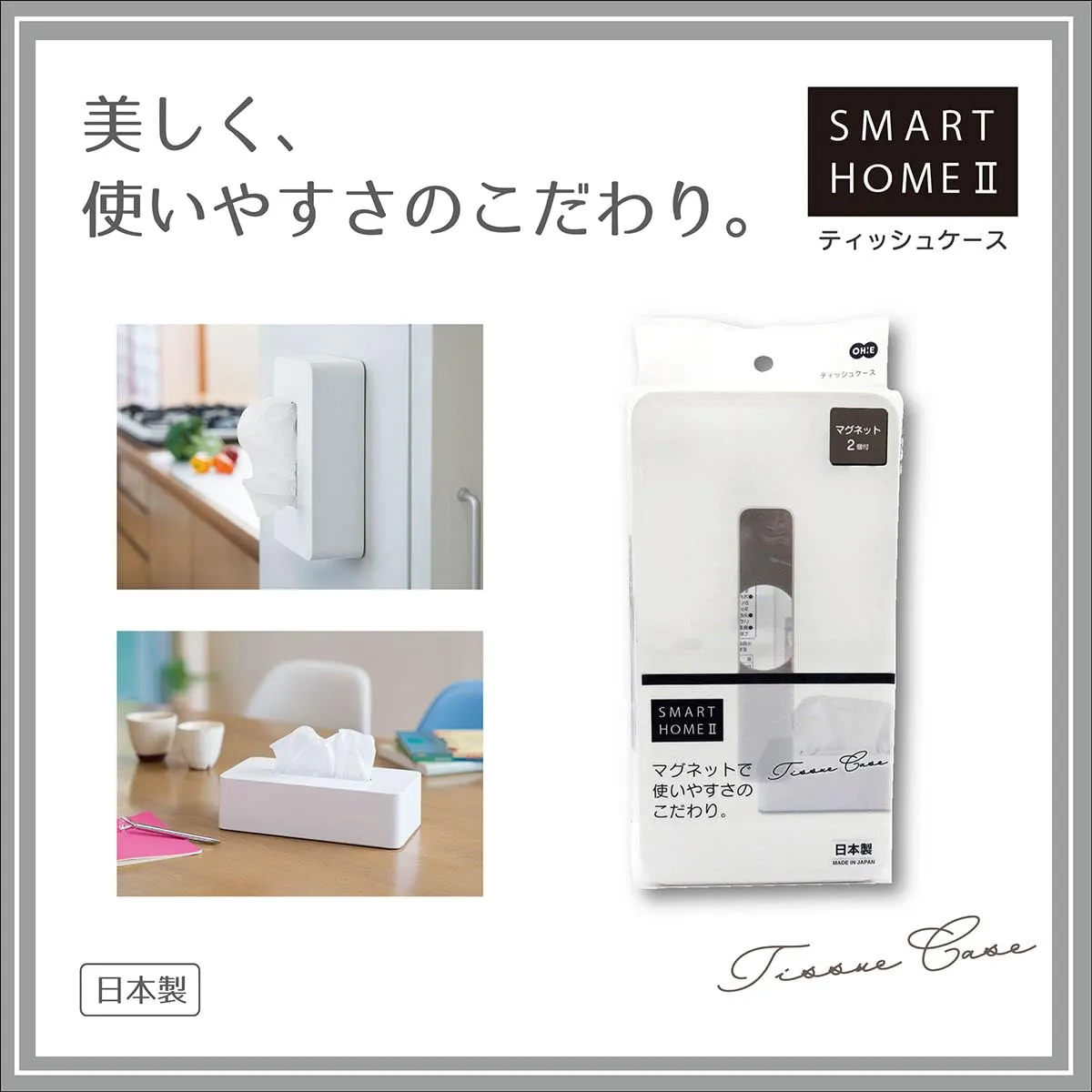 オーエ(Ohe) ABS樹脂 ティッシュケース 長方形 白 約縦24.5×横13×高さ7cm スマートホーム II ペーパーホルダー ティッシュボックス マグネット付き シンプル 日本製