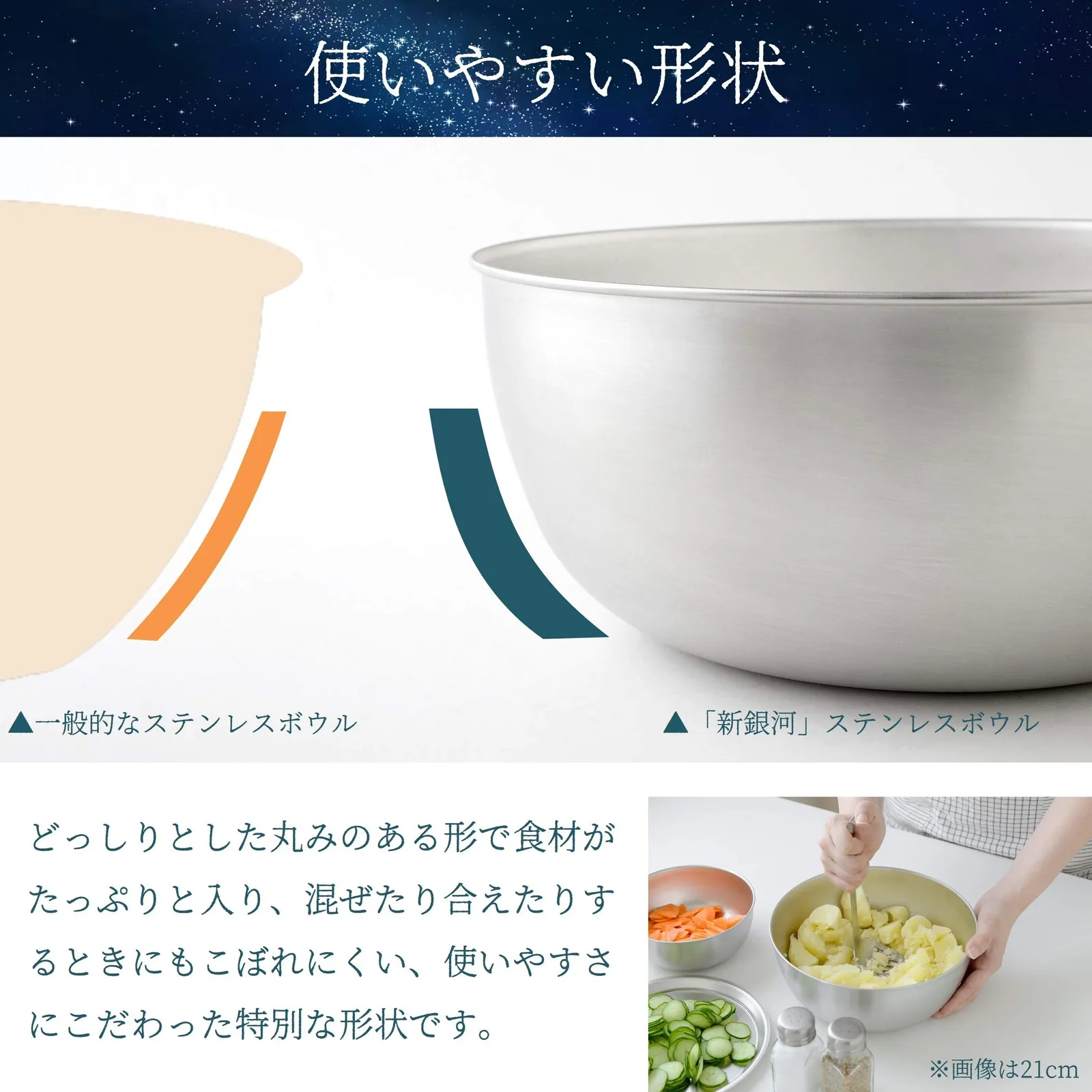 【日本製】 ボウル 21㎝ キズがつきにくい(新素材ステンレス「新銀河」使用) 18-8 ステンレス 混ぜやすく和えやすい形状 大手飲食店愛用ブランド A-77708