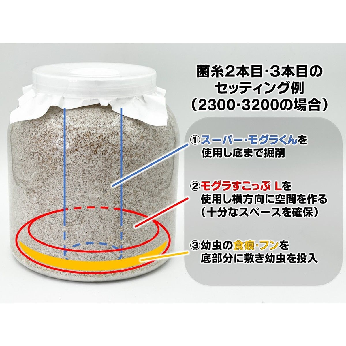 スーパー・モグラくんと併せてご使用いただく事で、幼虫投入時の暴れ防止に役立ちます。
