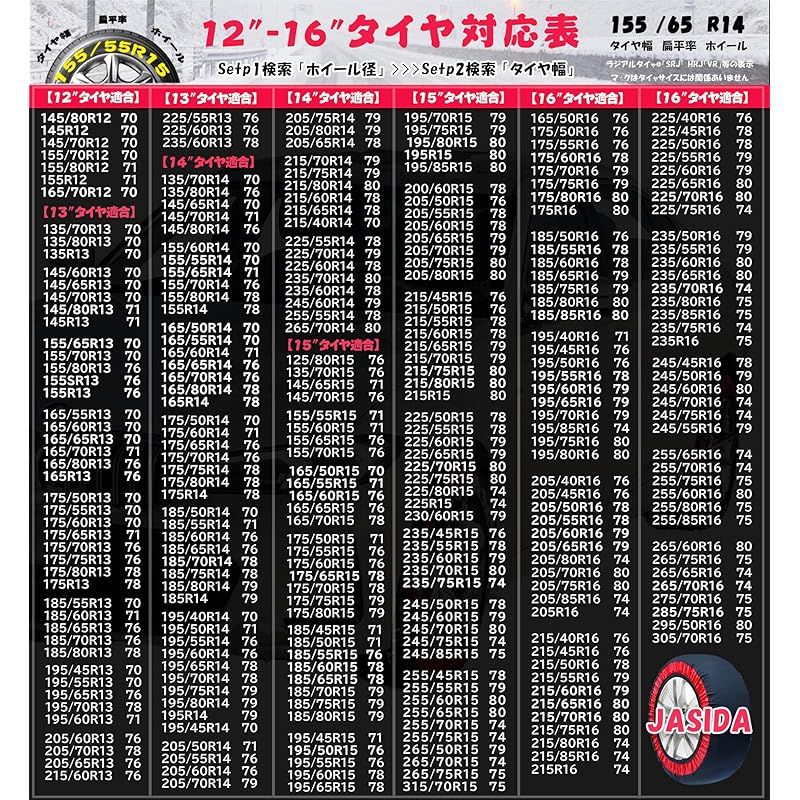 商品名:JASIDA スノーソックス 布製 タイヤチェーン 非金属 スノーチェーン 軽自動車 チェーン規制適合 冬雪 雪道 凍結 タイヤ 滑り止め 正規品 KE71適応タイヤ:155/65R14 165/55R15 155/80R12 155R12 145/80R13