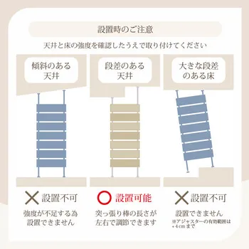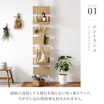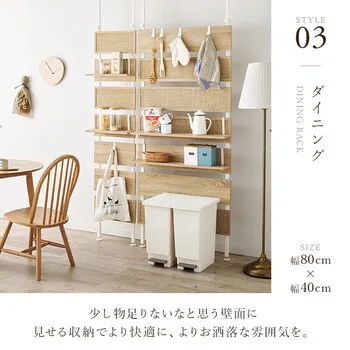 お部屋のいろいろな場所に設置できる突っ張り式ラック。