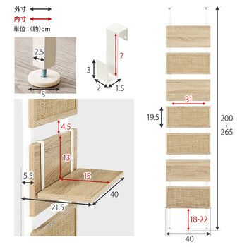■本体サイズ:(約)幅40×奥行21.5×高さ200〜265cm