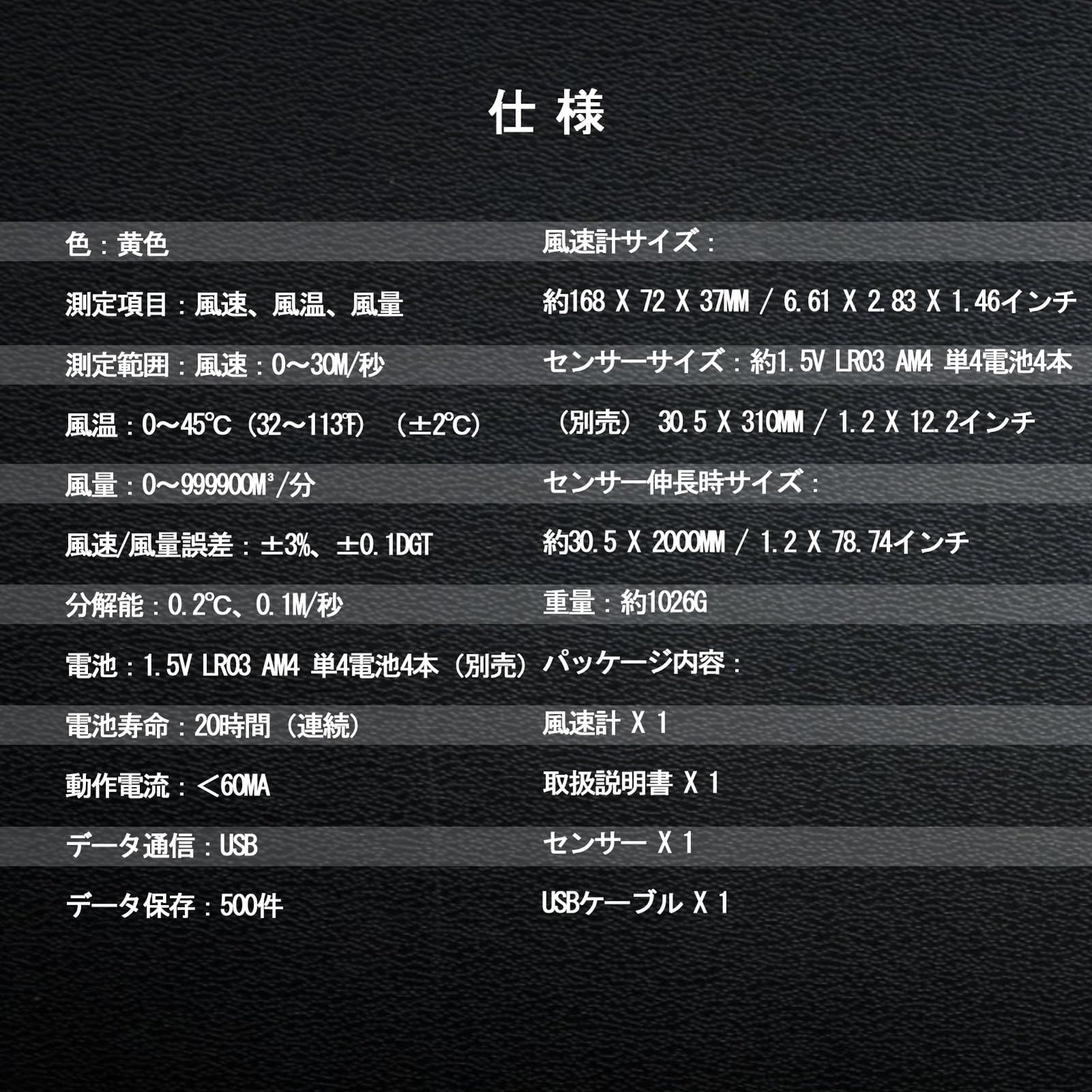 【分析に便利】最大 500 件の測定データを機内に保存可能,付属の USB ケーブルと PC ソフトウェア(同梱)を使ってコンピュータにデータをエクスポートできる。長時間の風速変化を記録してグラフ化分析したり、アウトドアイベントのデータ報告を作成したりするのに最適です。