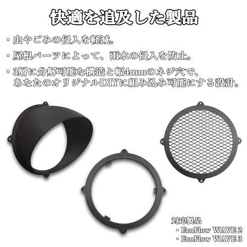 for EcoFlow WAVE2 / WAVE3 ダクトカバー 取付パーツ 大小セット 雨水防止 虫やゴミの侵入を防止 外見向上 DIYに組み込み可能 【NemRily】 (雨よけ有, タイプA)☆彡