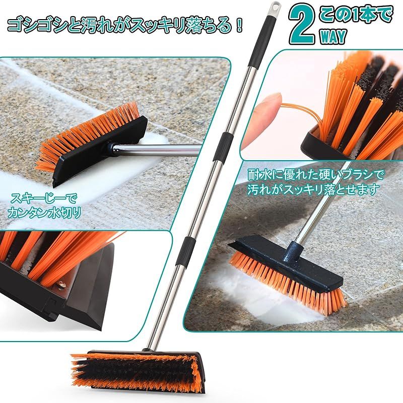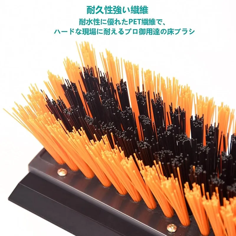 【耐久性に優れた設計】デッキブラシの強度と耐久性を確保するために、柄はねじ込み式のデザインを使って、さらに、頑丈なスチール柄を採用します。ブラシは耐水に優れたPET素材を使われて、硬いブラシで頑固な汚れを強力除去し、高耐久で清掃効率アップ!
