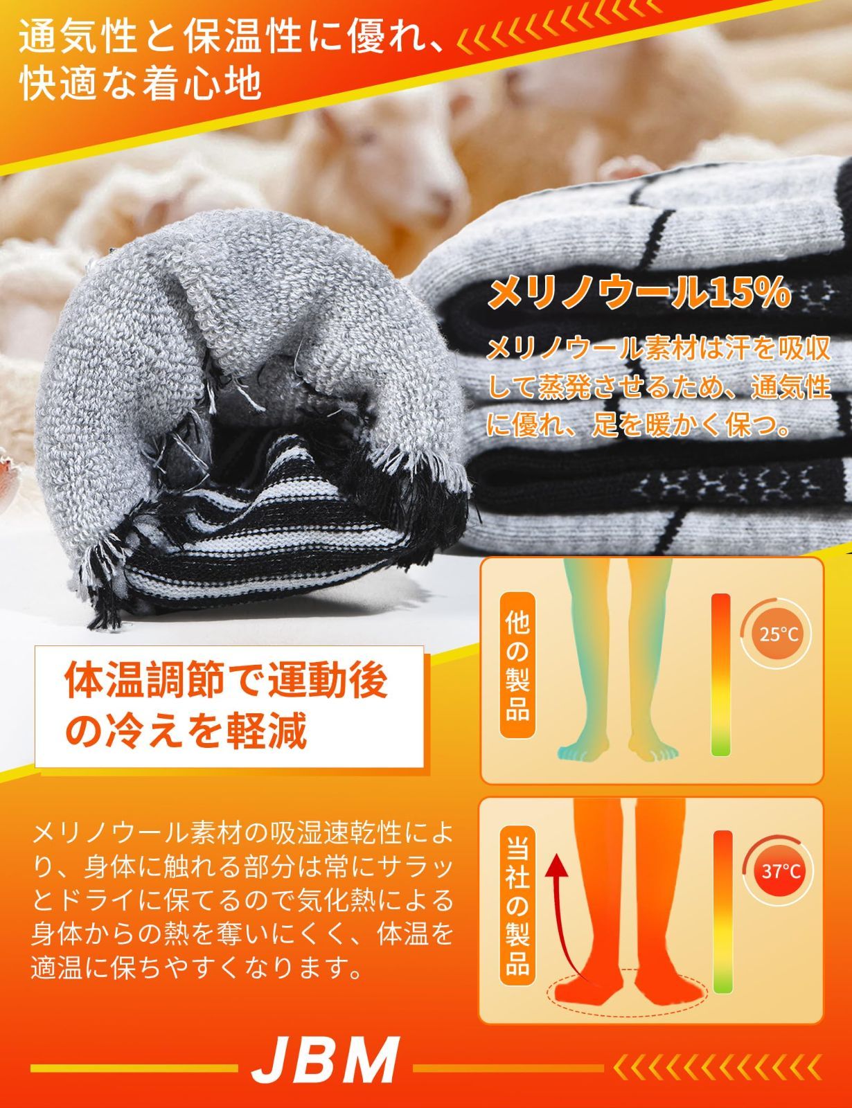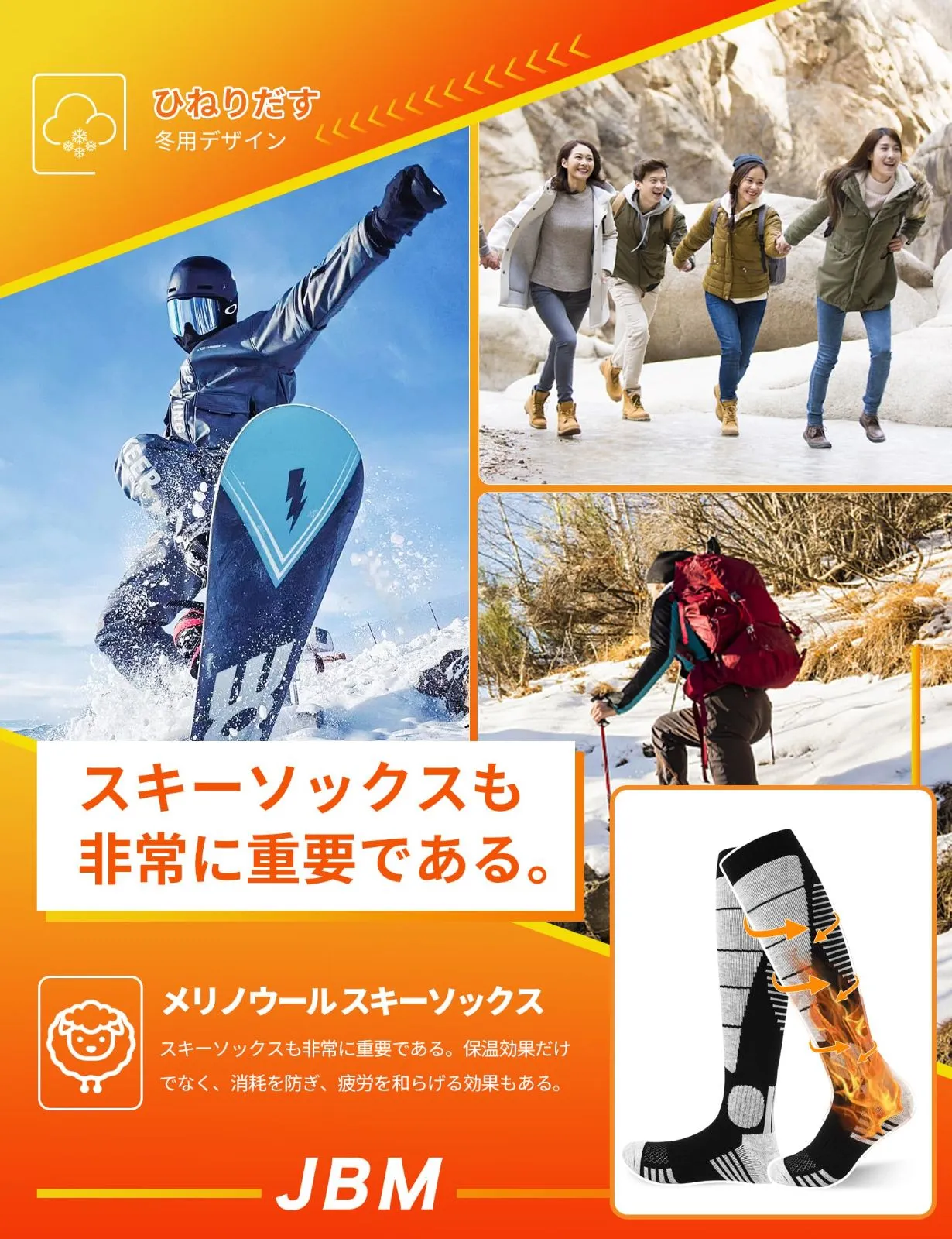 [JBM] スキーソックス スノーボード スキー靴下 厚手 スノボ 登山 冬用 アウトドア スポーツ 登山用 ハイキング トレッキング あったか 段階着圧 防寒 速乾 吸汗 レディース メンズ 2足組