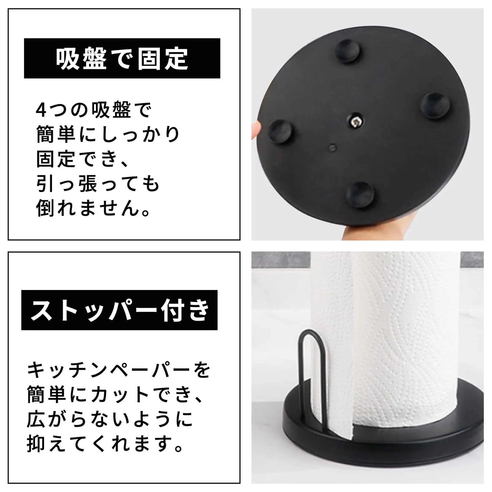 【4つの吸盤でしっかり固定・ストッパー付き】4つの吸盤でしっかり吸着でき、強めに引っ張っても倒れにくい設計となっています。独自のストッパーでペーパーを簡単にカットでき、無駄に広がらないように抑えてくれます。