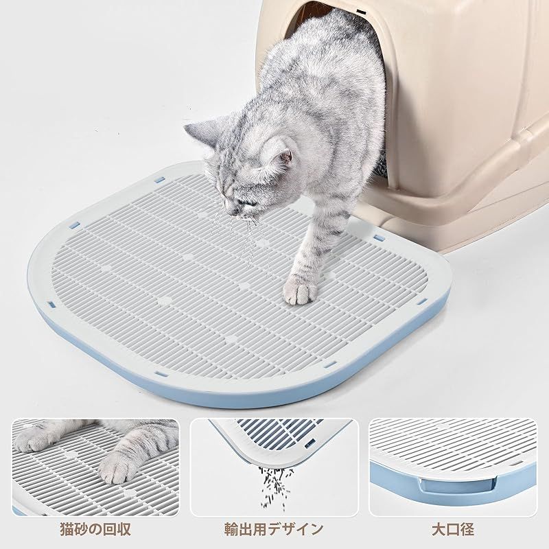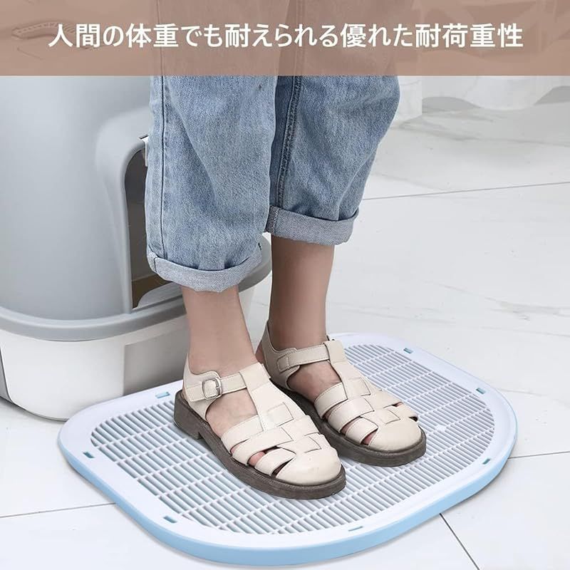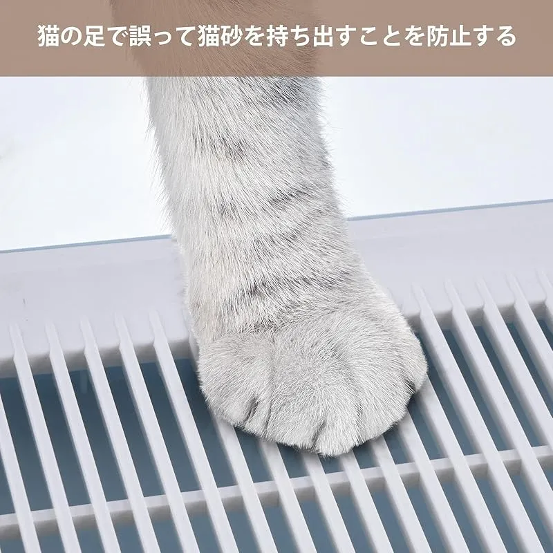 外付け防止--蓋に砂粒状の穴が開いているので、肉球に挟まった砂をしっかりつかみ、底トレイに落とすことができる。