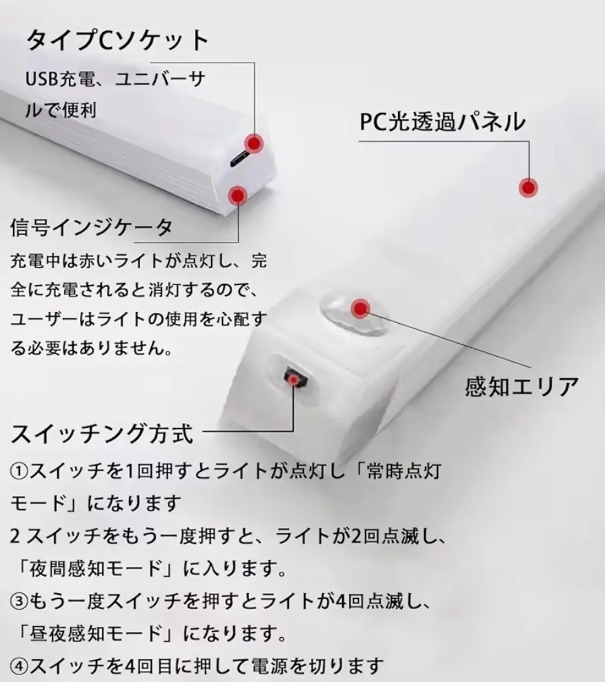 廊下・玄関・階段・クローゼット・トイレ・物置など、電気のスイッチを探す手間がなく、夜間も安心・快適に使えます♪