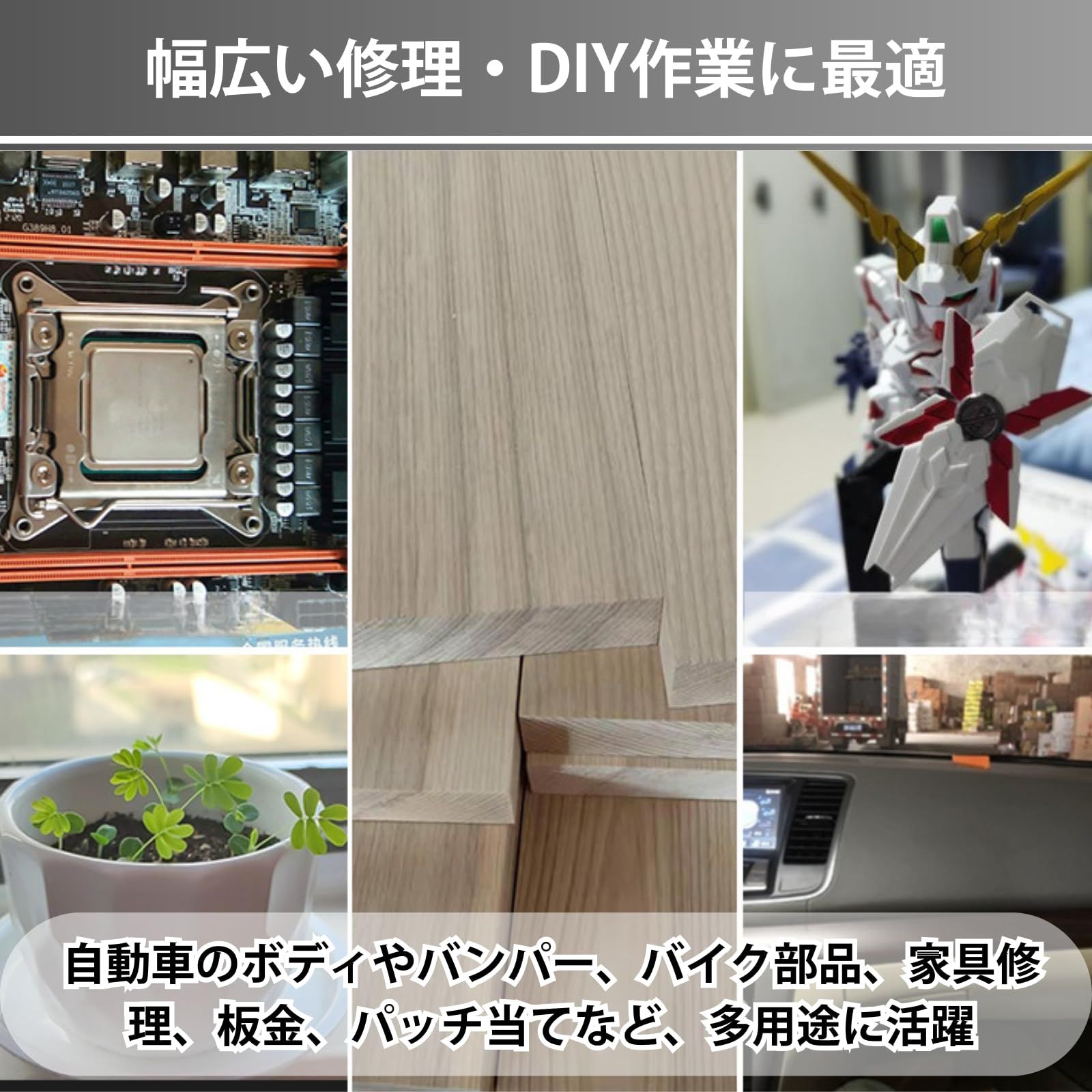 【幅広い修理・DIY作業に最適】自動車のボディやバンパー、バイク部品、家具修理、板金、パッチ当てなど、多用途に活躍。接着剤の混合不足を防ぎ、仕上がりを安定させます。軽量で使いやすいプラスチック素材を採用。使い切りタイプとしても扱いやすく、作業後の処理も簡単です。