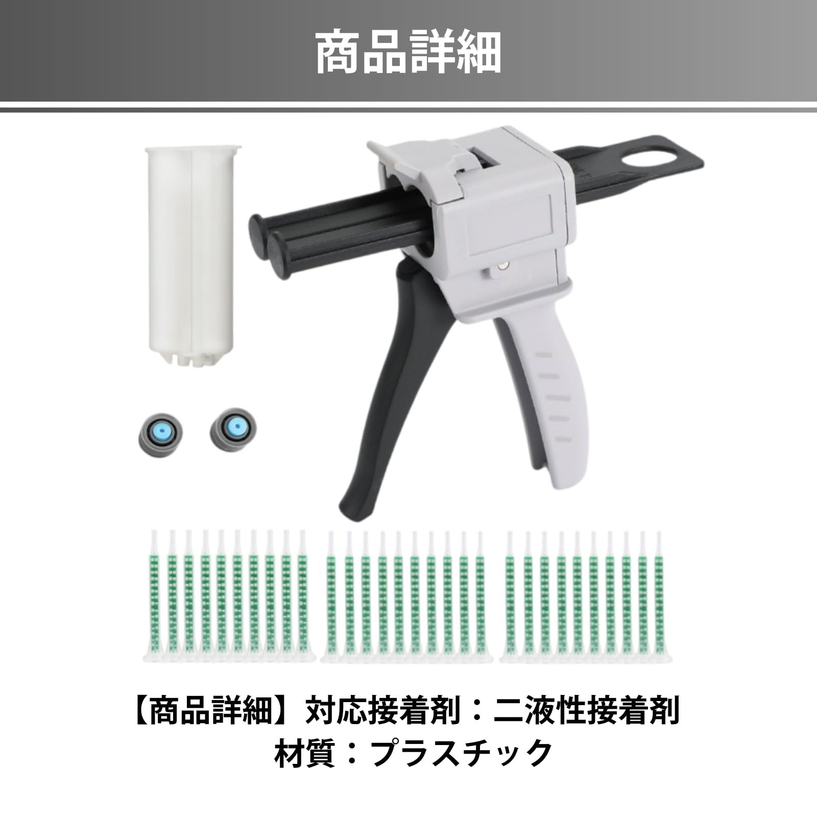 ミキシングノズル メグミックス 互換 2液 混合 ミックスノズル パーツ 修理 補修 修復 (1:1ガン+ケース+ノズル30本)