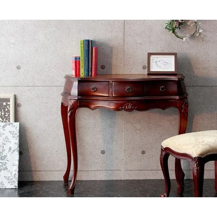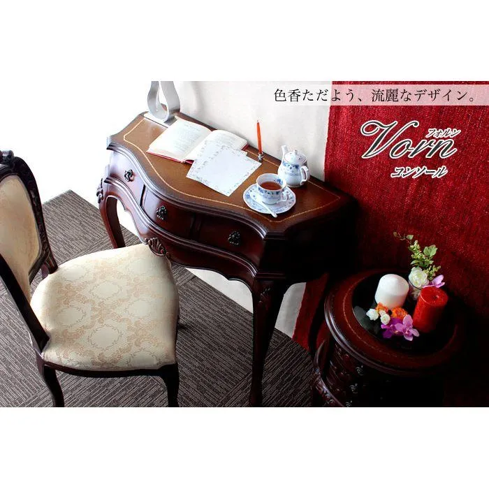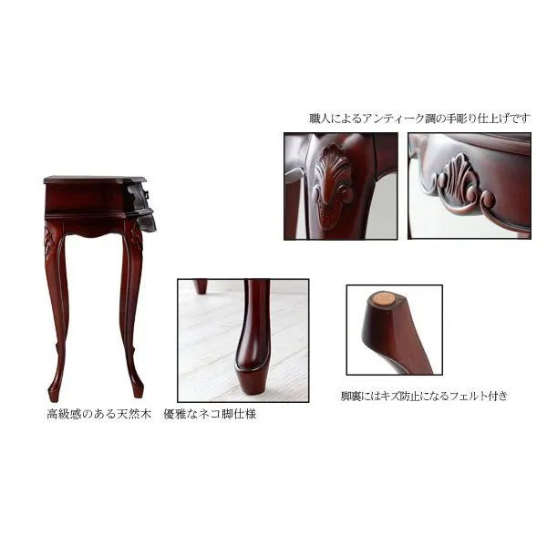 天然木の渋い風合いに、手彫りの彫刻やアンティーク調の取手がアクセントに。