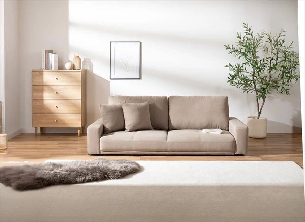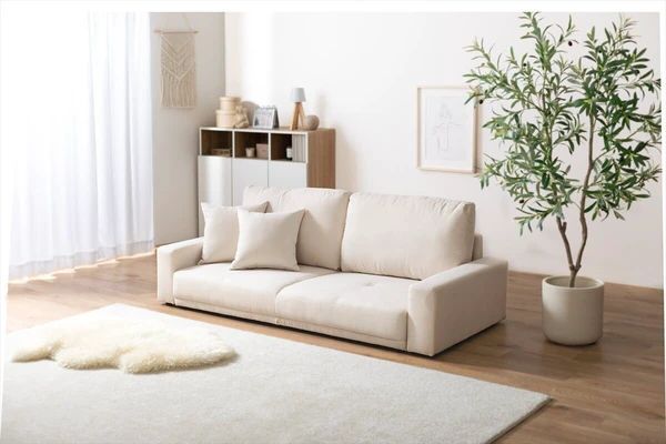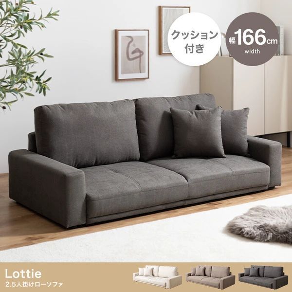 ベーシックなシンプルデザインで、部屋のテイストを選ばず取り入れやすい2.5人掛けローソファ。