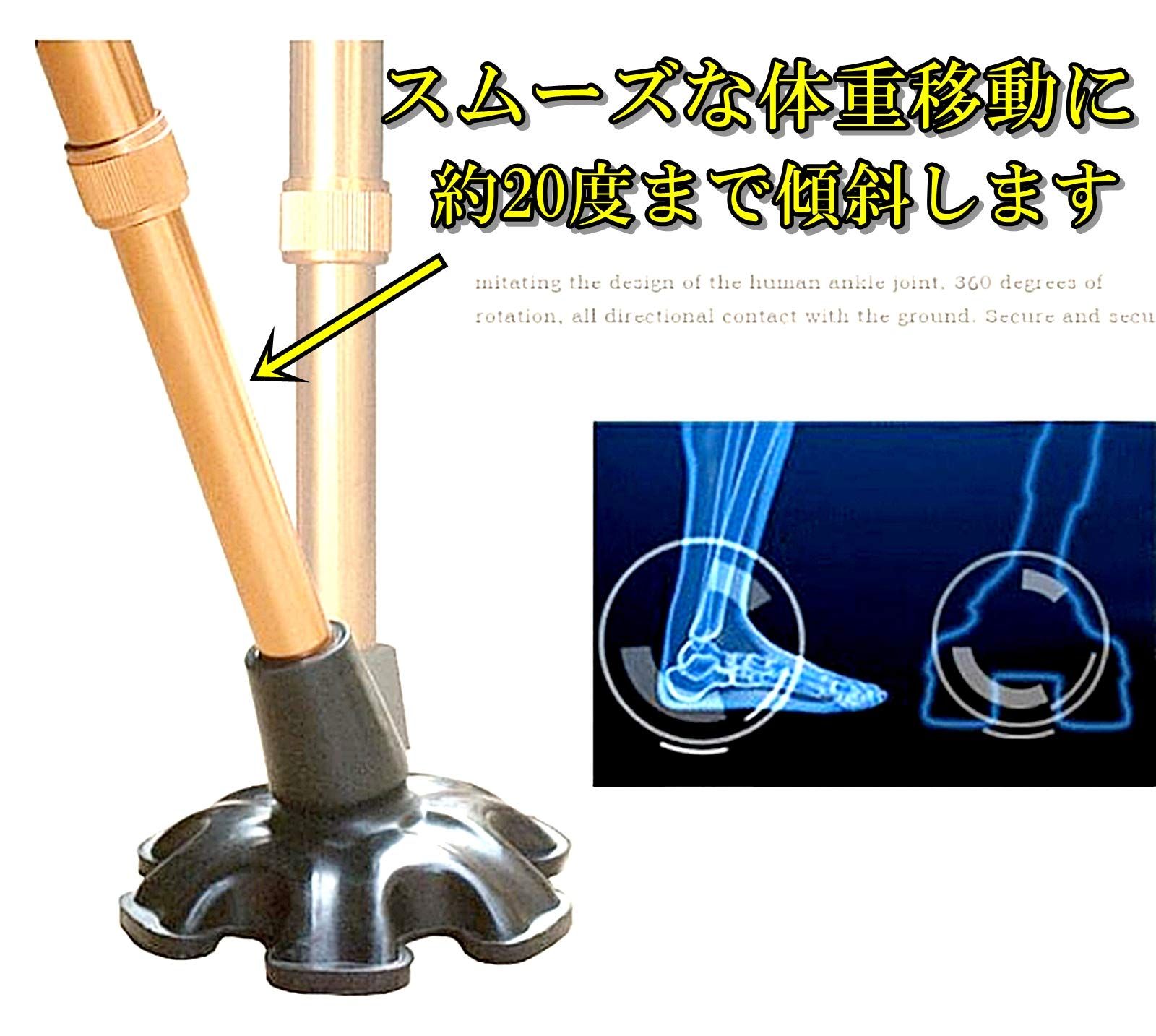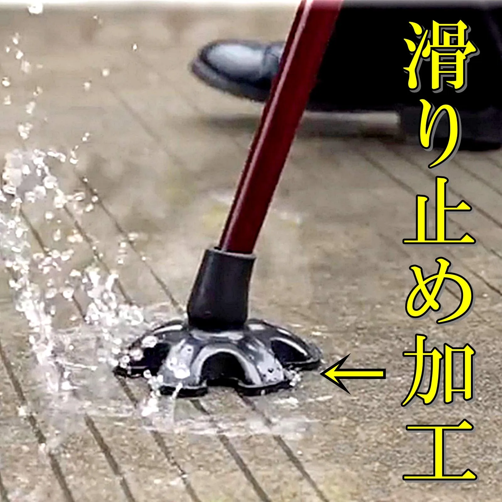 ?4本の足の裏に滑り止め加工が施されており、歩行時も滑りにくくなっています。雨や泥などから杖が滑る事による転倒から身を守ります。