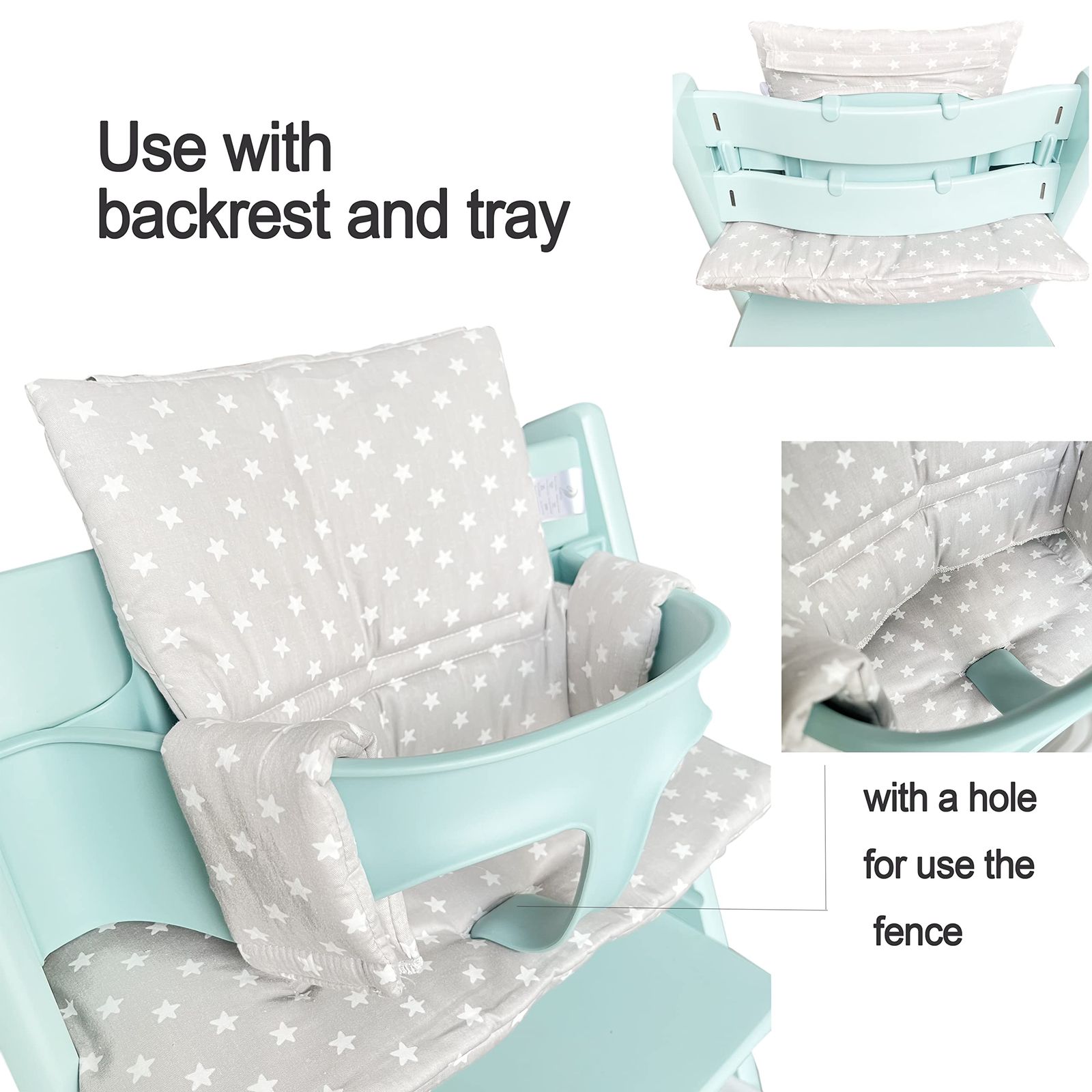 ZARPMA ハイチェアクッションコットンパッドを詰めたコットンファブリックカバー に適用 Stokke TrippTrapp 椅子 (灰色の星)