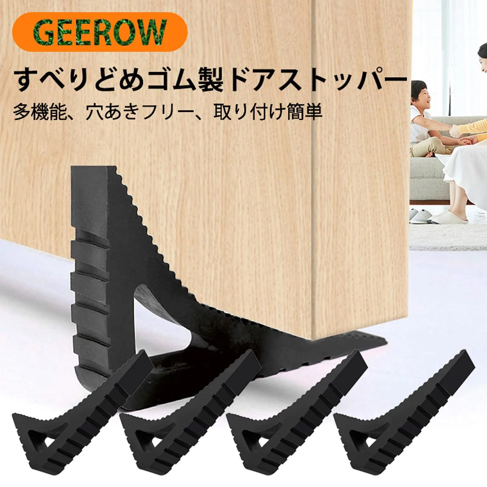 ドアストッパー ゴム 4個セット 室内 扉ストッパ 引き戸ストッパー 強力固定 引き戸 マルチファンクションゲートプラグ 玄関ドアストッパー ストッパロックアウト スライドドア 家庭用 収納便利 防風 衝突防止 (ブラック)