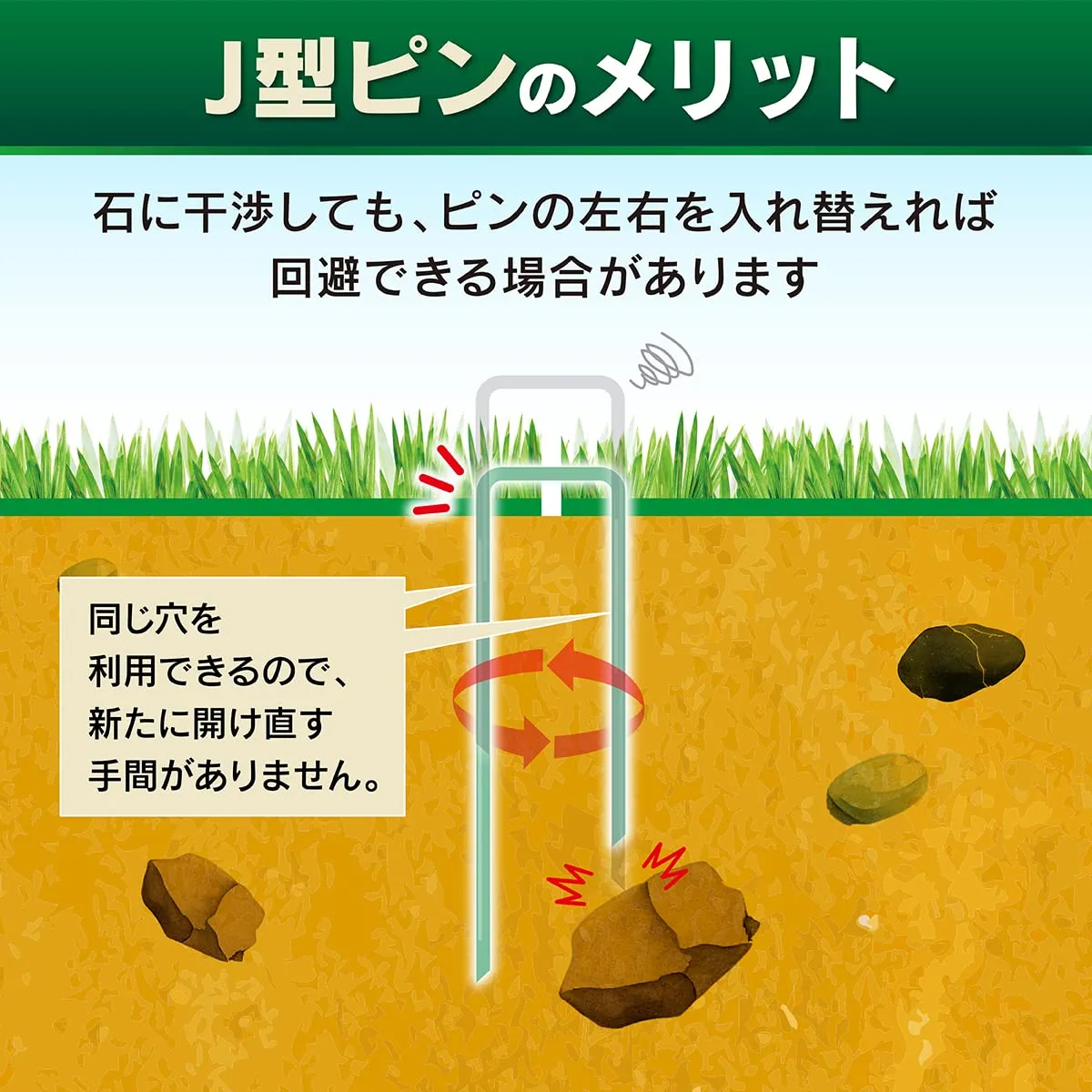 用途:DIY人工芝設置やガーデニングの施工に理想的。ランドスケープの人工芝をしっかり固定できるJ型ピン。