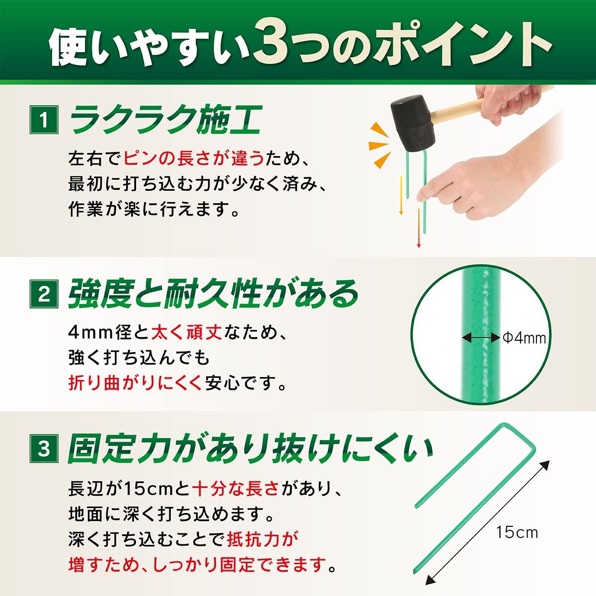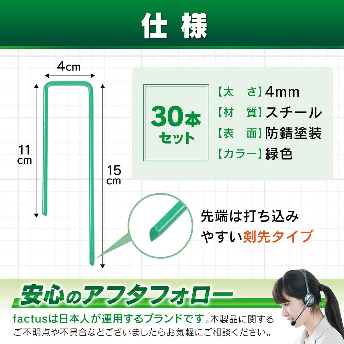 商品名:factus 人工芝 ピン J字型 太さ4mmで頑丈 折れにくい 止めピン 押さえピン 剣先タイプ 緑 30本