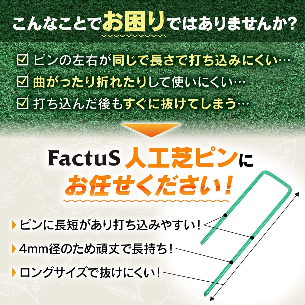 factus 人工芝 ピン J字型 太さ4mmで頑丈 折れにくい 止めピン 押さえピン 剣先タイプ 緑 30本