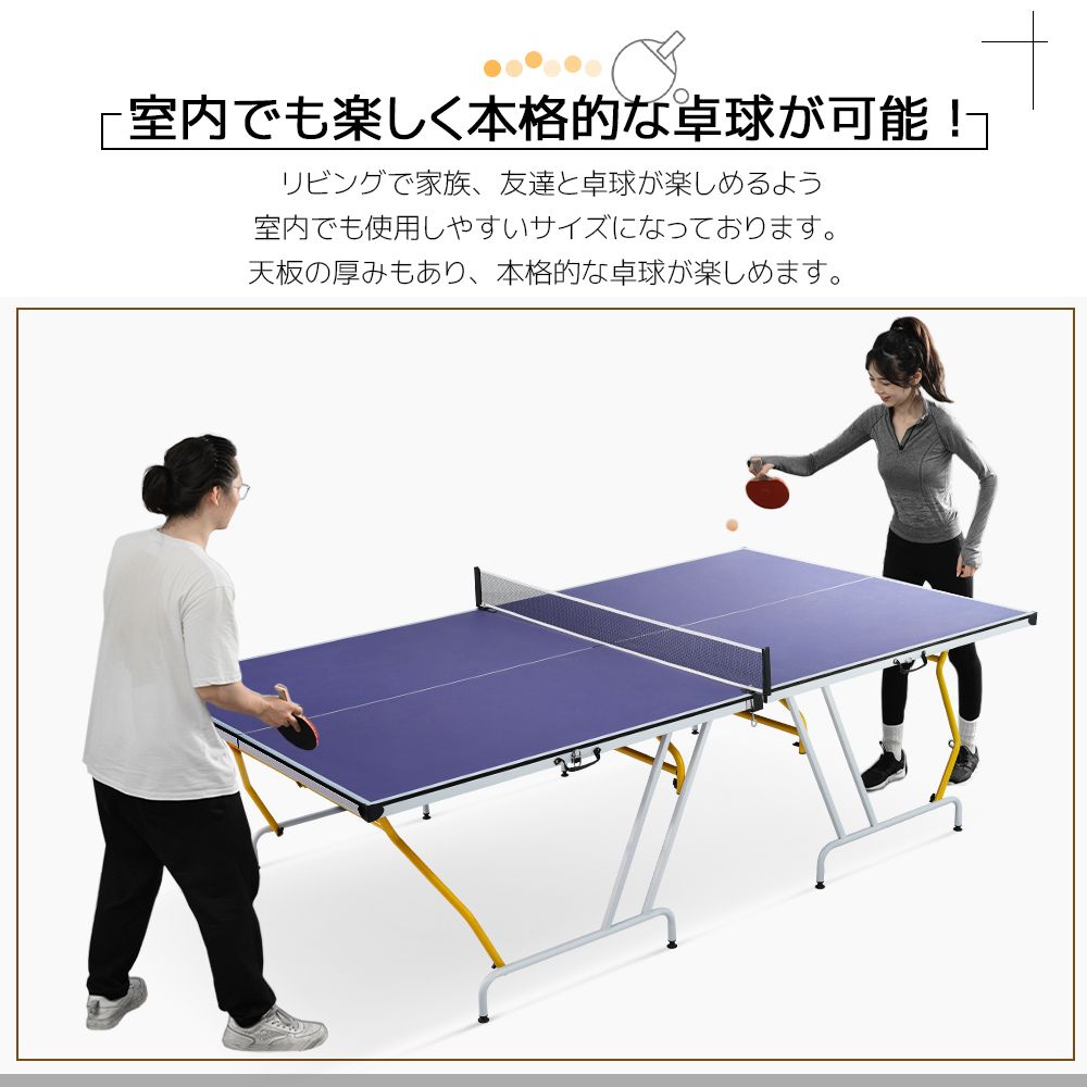 【室内でも楽しく本格的な卓球が可能!】リビングで家族、友達と卓球が楽しめるよう 室内でも使用しやすいサイズになっております。 天板の厚みもあり、しっかりした打感で本格的な卓球が楽しめます。
