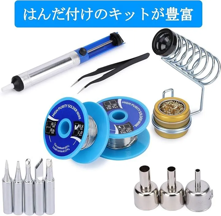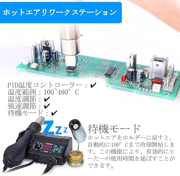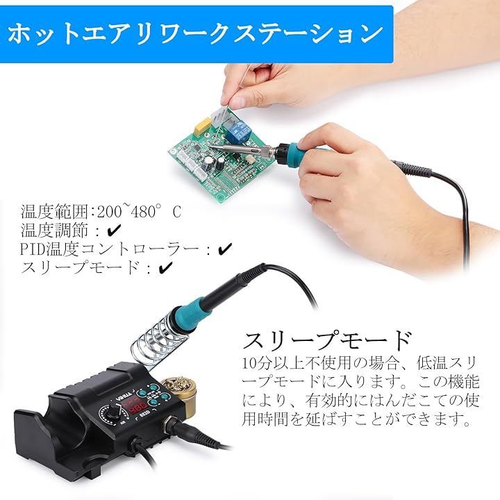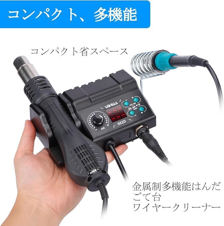 はんだごてとホットエアガンは温度調整可能で、風量も自由に調節できます。