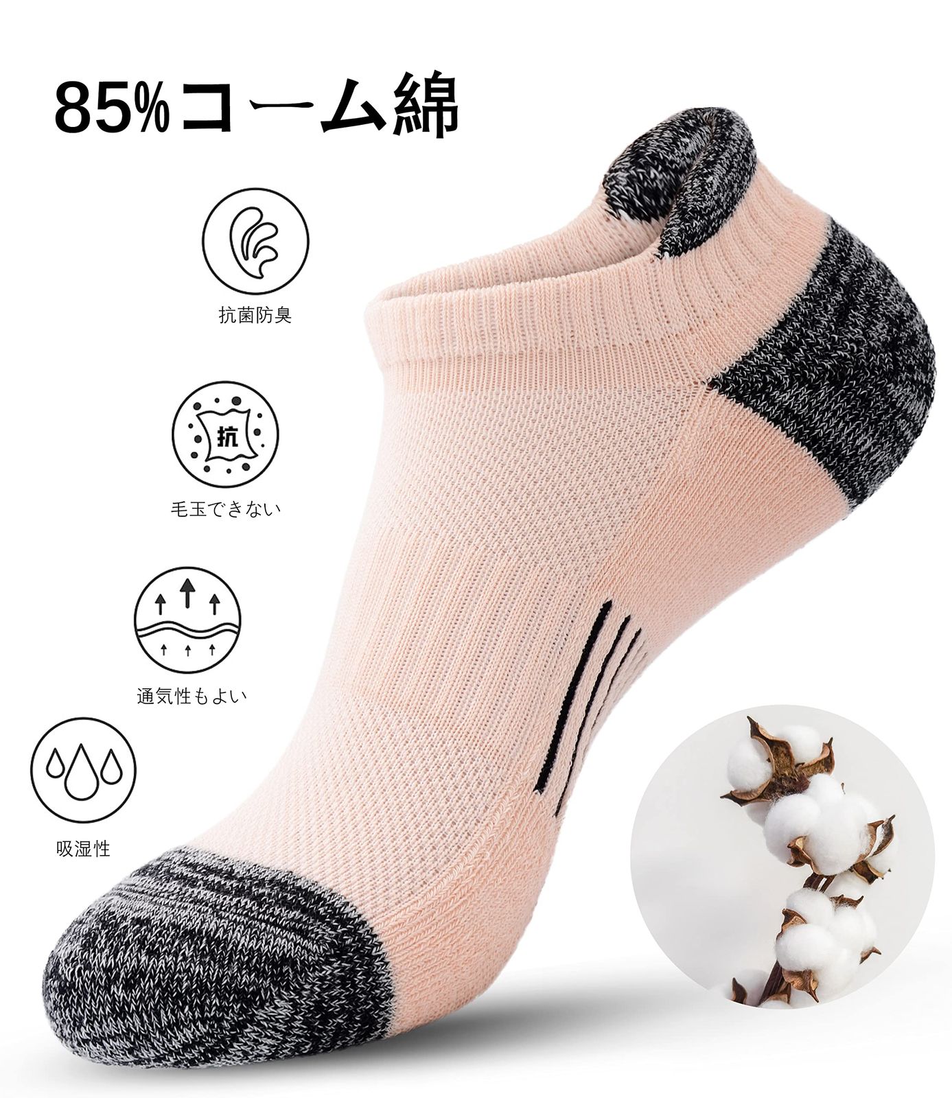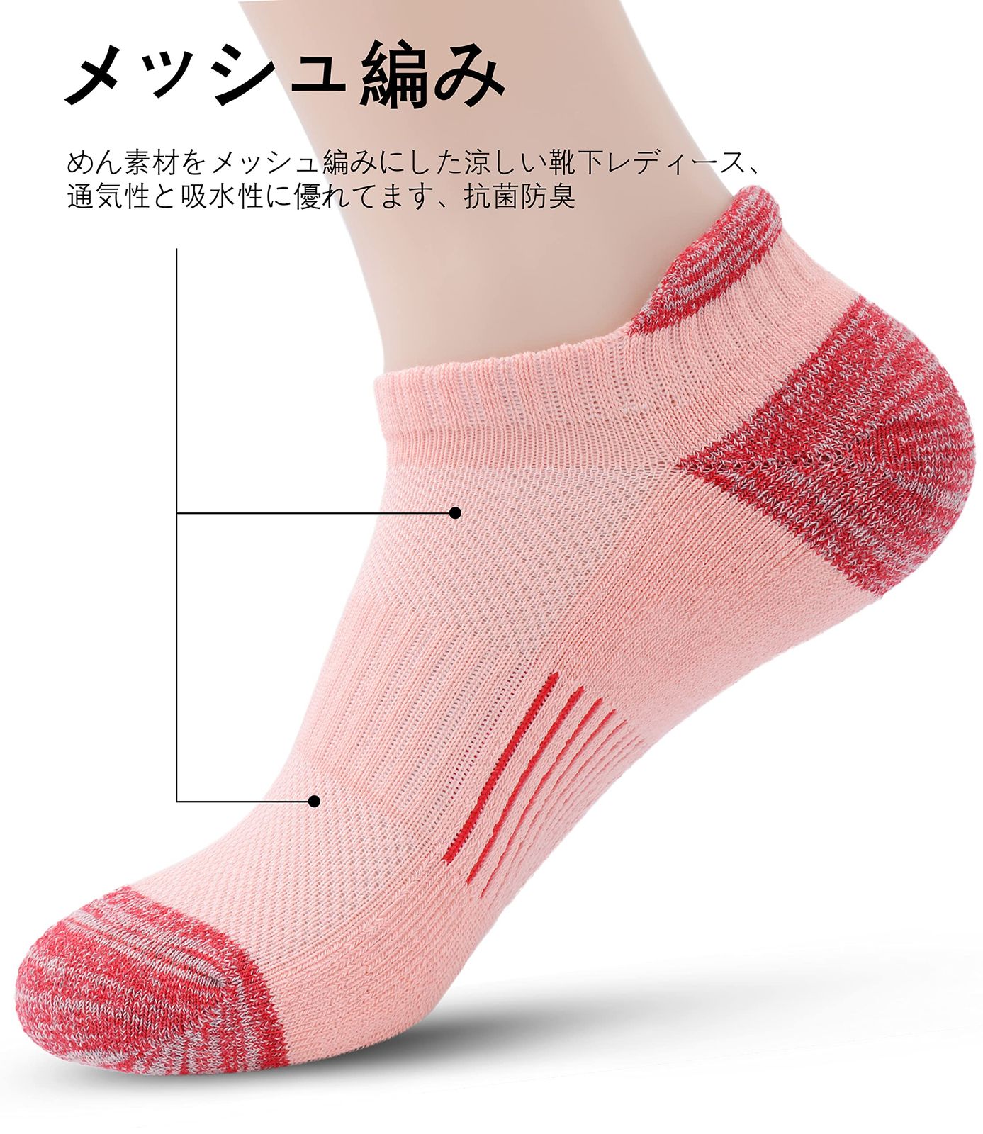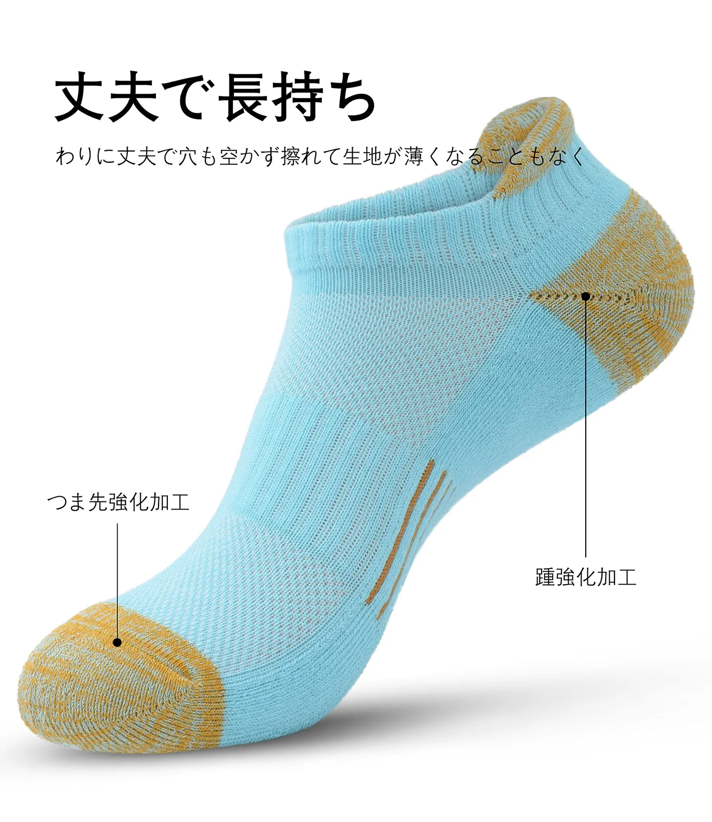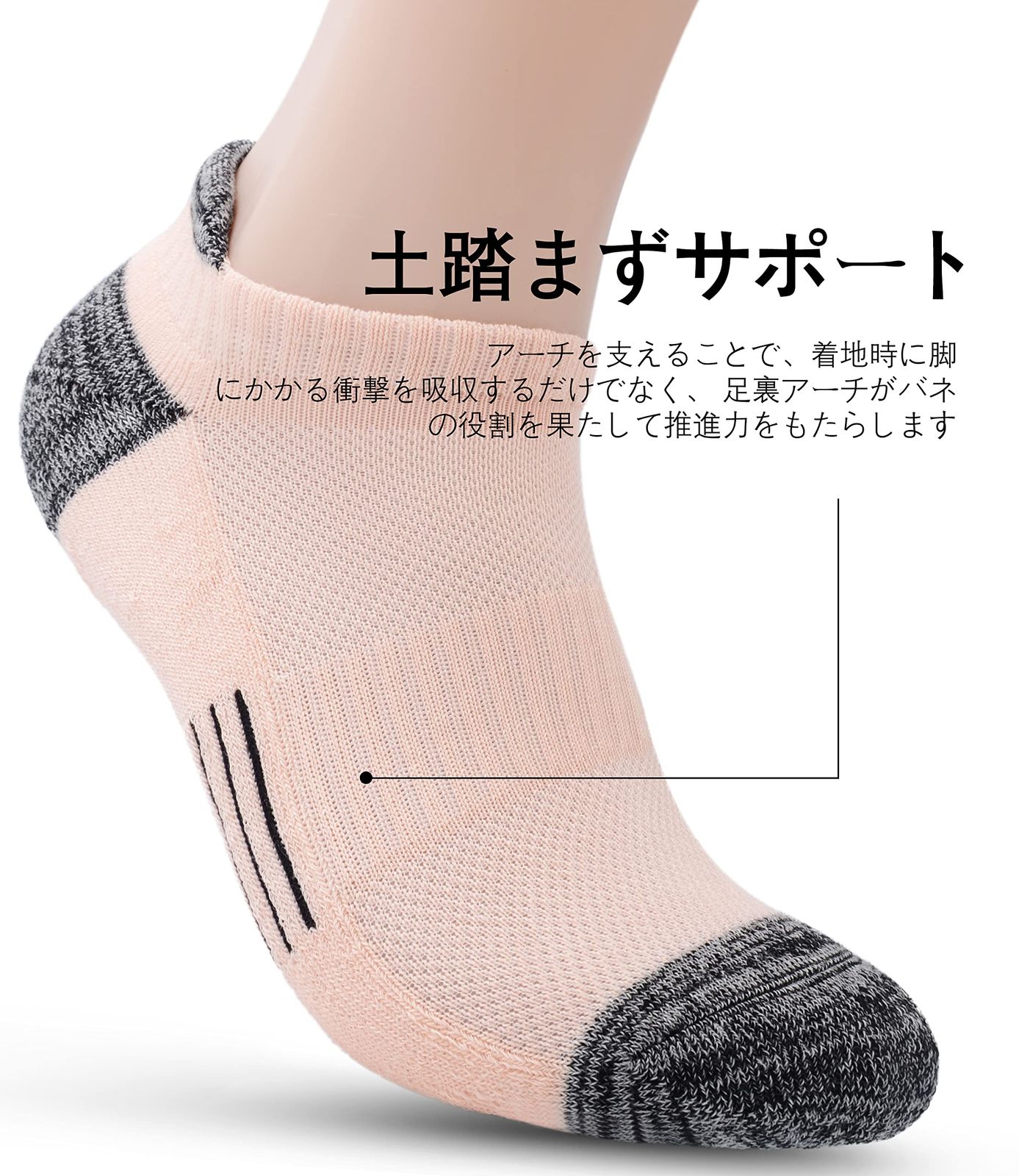[banerise] スポーツソックス レディース 登山 テニス ランニングソックス 底パイル アーチサポート 靴下 ジュニア クォーターソックス 5足 セット