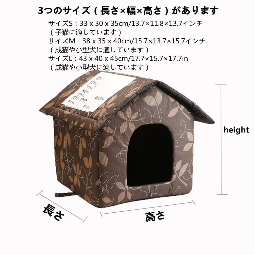 【3サイズオプション】:ペットハウスの長さ×幅×高さ約:小サイズは33×30×35cm(2.5kg未満のペット用)/中サイズは38×35×40cm(4kg未満のペット用) /ラージサイズは43x 40 x 45cm(6kg未満のペットの場合)です。ご注文の前に、サイズパラメータを参照して適切なペットハウスを選択してください。ありがとうございます。
