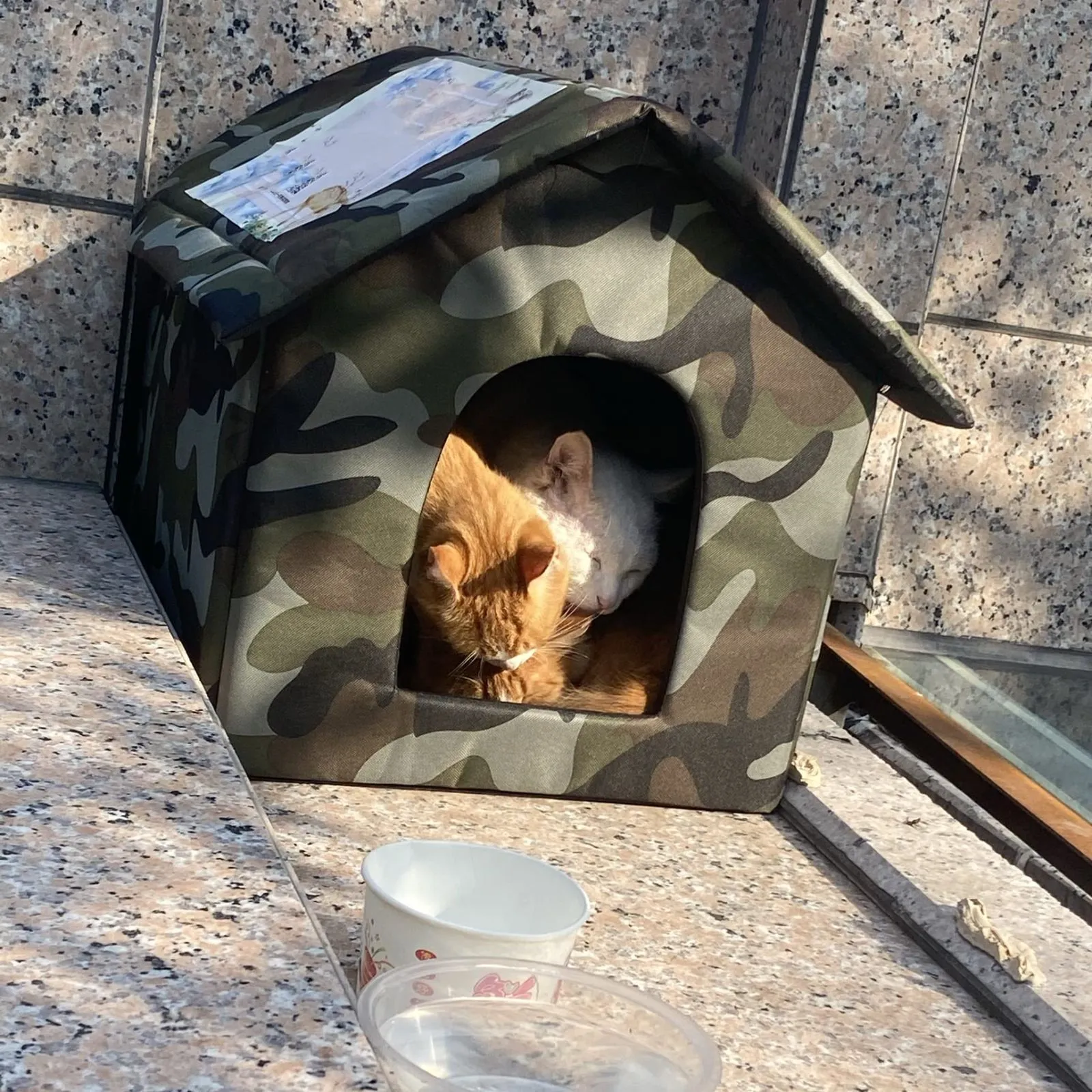 【防水・保温】:冬用断熱屋外キャットハウスは600D防水オックスフォード生地とスポンジコンパートメントで作られています。ペットハウスアウトドアは、耐久性、防水性、耐候性だけでなく、暖かく快適で、冬のアウトドア猫に最適なキャットハウスです。