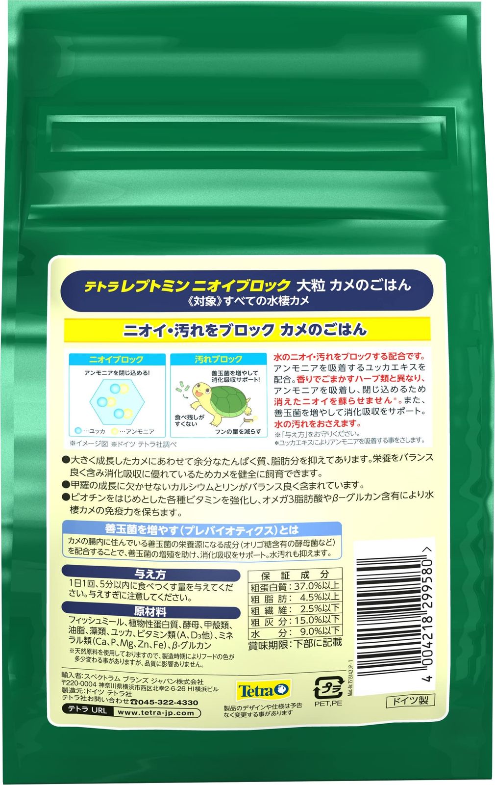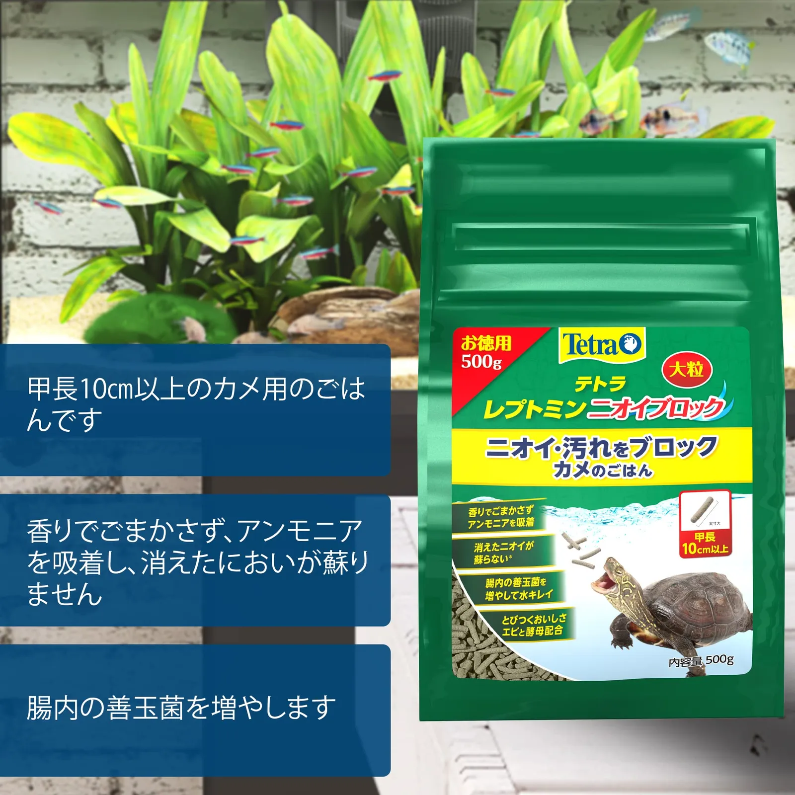 テトラ (Tetra) レプトミン ニオイブロック大粒 500g ニオイ汚れをブロック アンモニアを吸着 腸内の善玉菌を増やす とびつくおいしさエビと酵母配合 亀 かめ カメ フード 餌