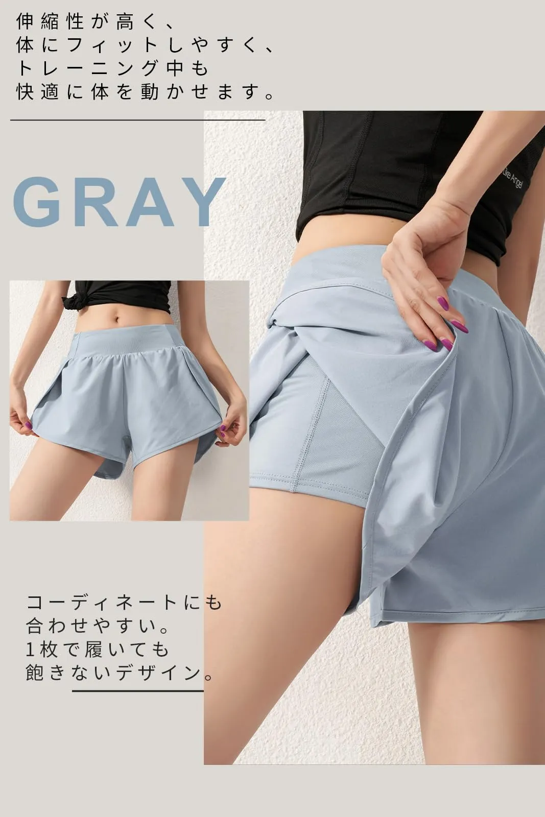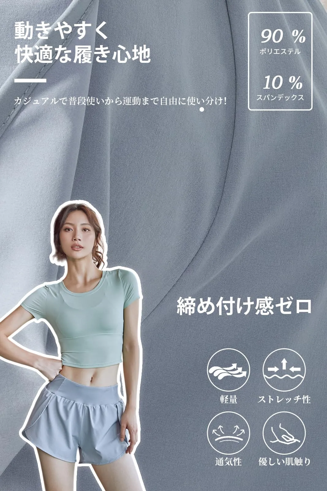 【パンツ付き一体型】スポーツ・フィットネス・ヨガに最適なショートパンツ一体型レギンスです。一体型なので重ね着やコーデを考える必要がなく、トップスを合わせるだけで簡単にトータルコーデが完成します。ショートパンツがヒップラインをカバーしてくれるので、ジムで運動をしたいけどおしりや太もも周り、生足は出したくないなんて方にもおすすめです。