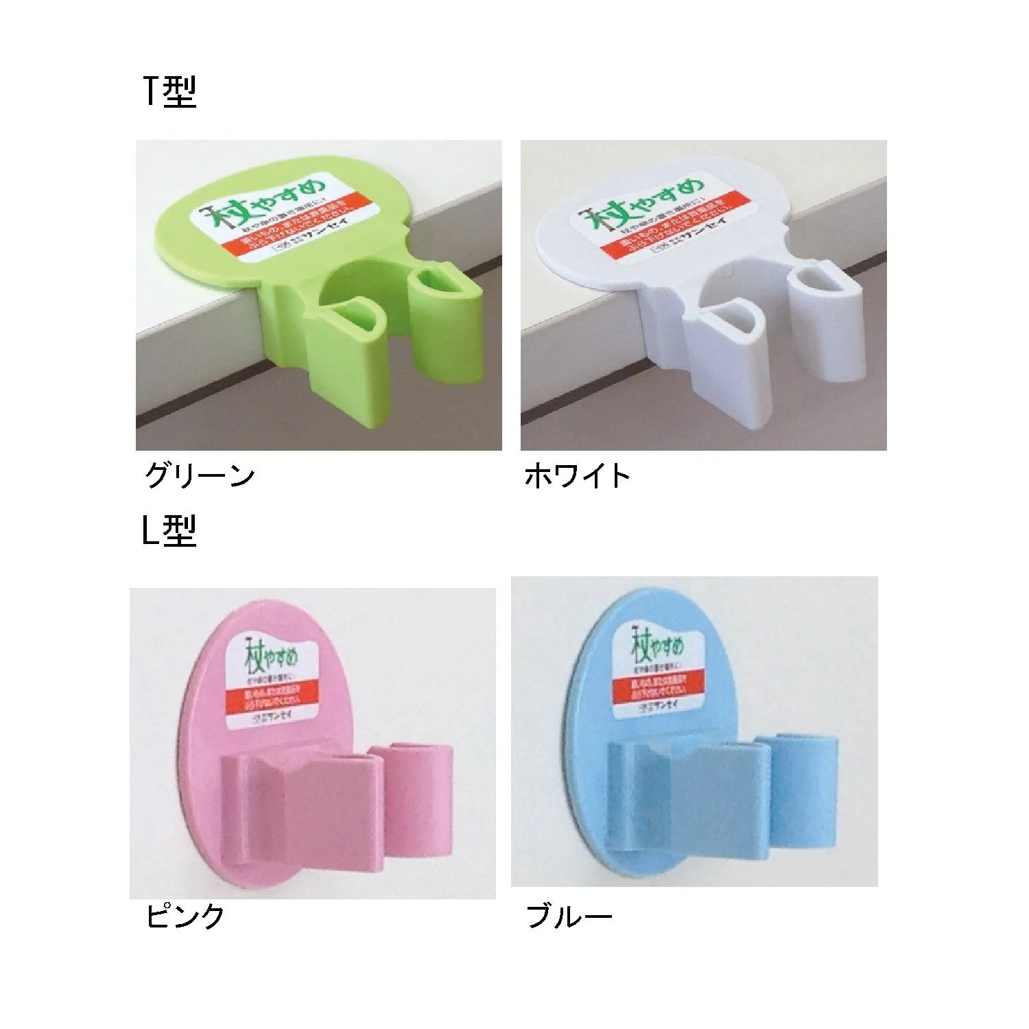 サンセイ 杖やすめ 粘着シール止めタイプ T型 杖ホルダー ステッキホルダー 傘 手提げカバン 取付簡単 16~25mm用 グリーン tue-T02
