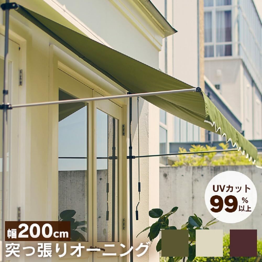 アイリスプラザ 突っ張りオーニングテント ブラウン 伸縮式 日よけ UVカット カット率99%以上 遮光 雨除け 目隠し 200×120cm