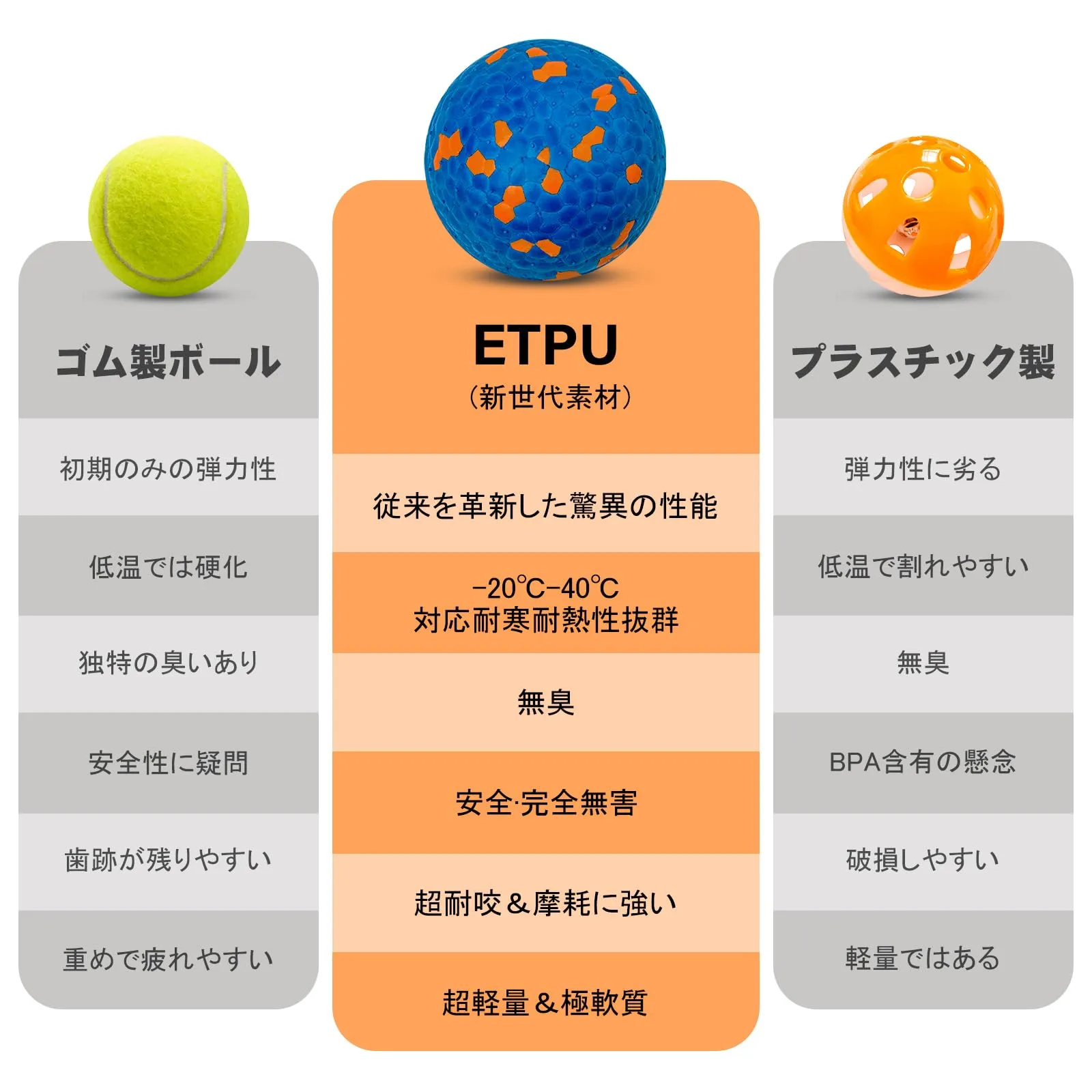 【超耐久!ガン噛み犬専門のETPUボール】最強の噛みつきにも耐える特殊素材。破壊・変形ゼロで、愛犬の安全と長く遊べる楽しさを約束します。