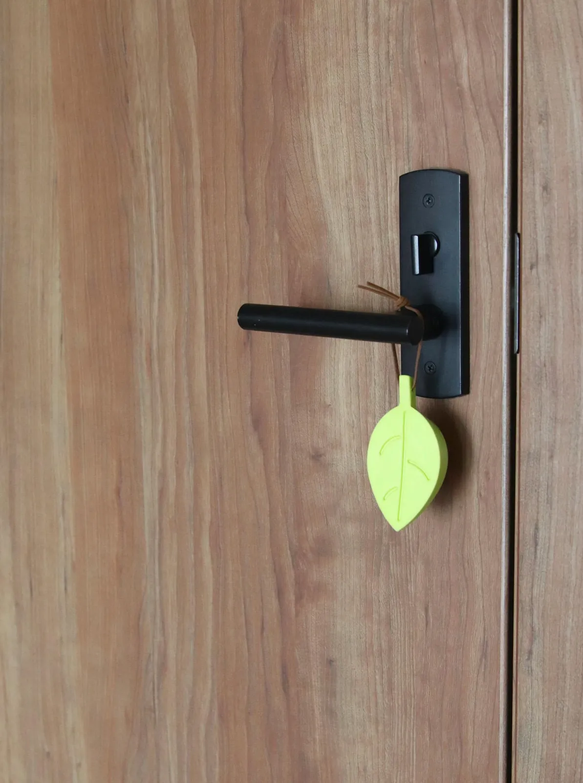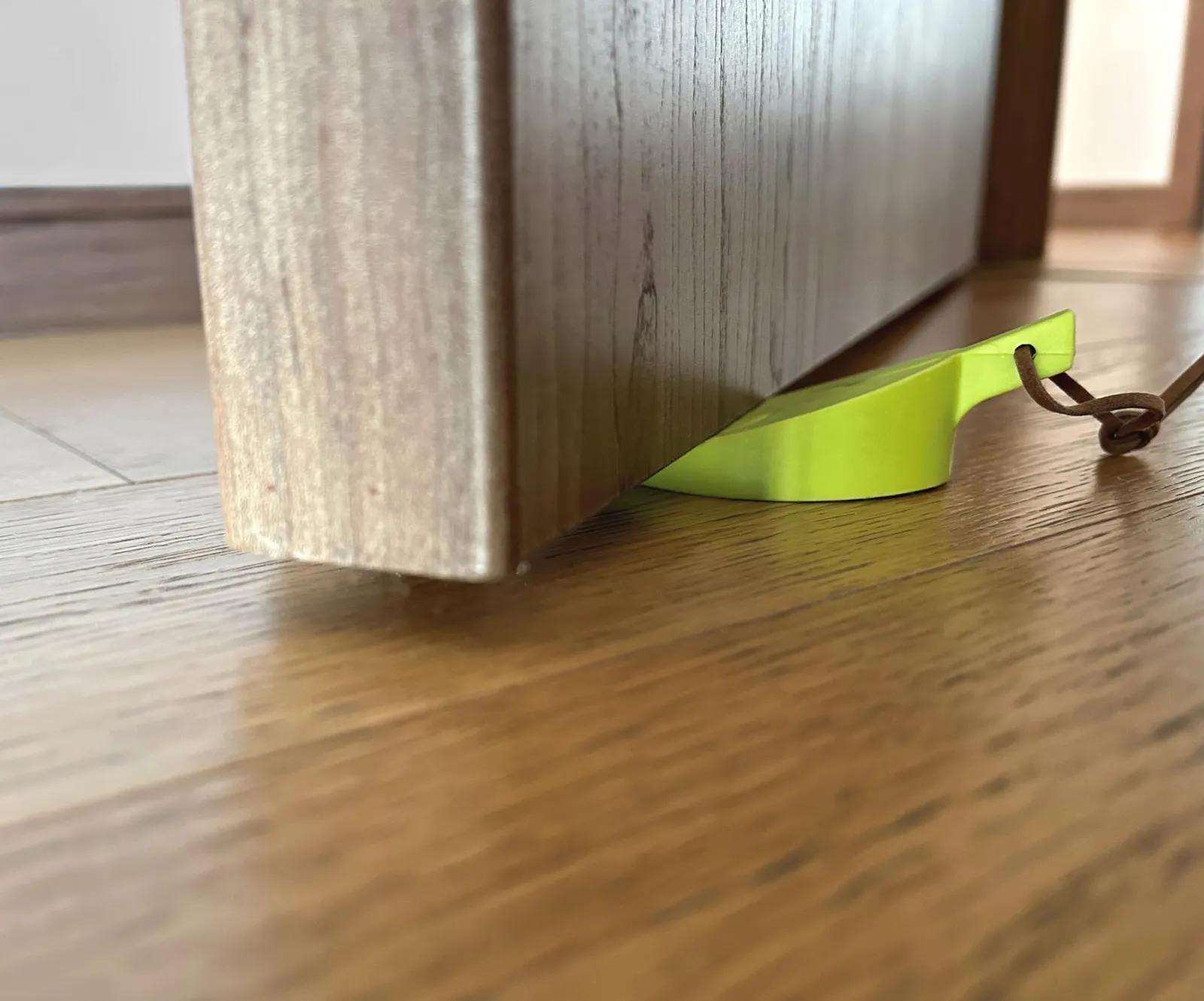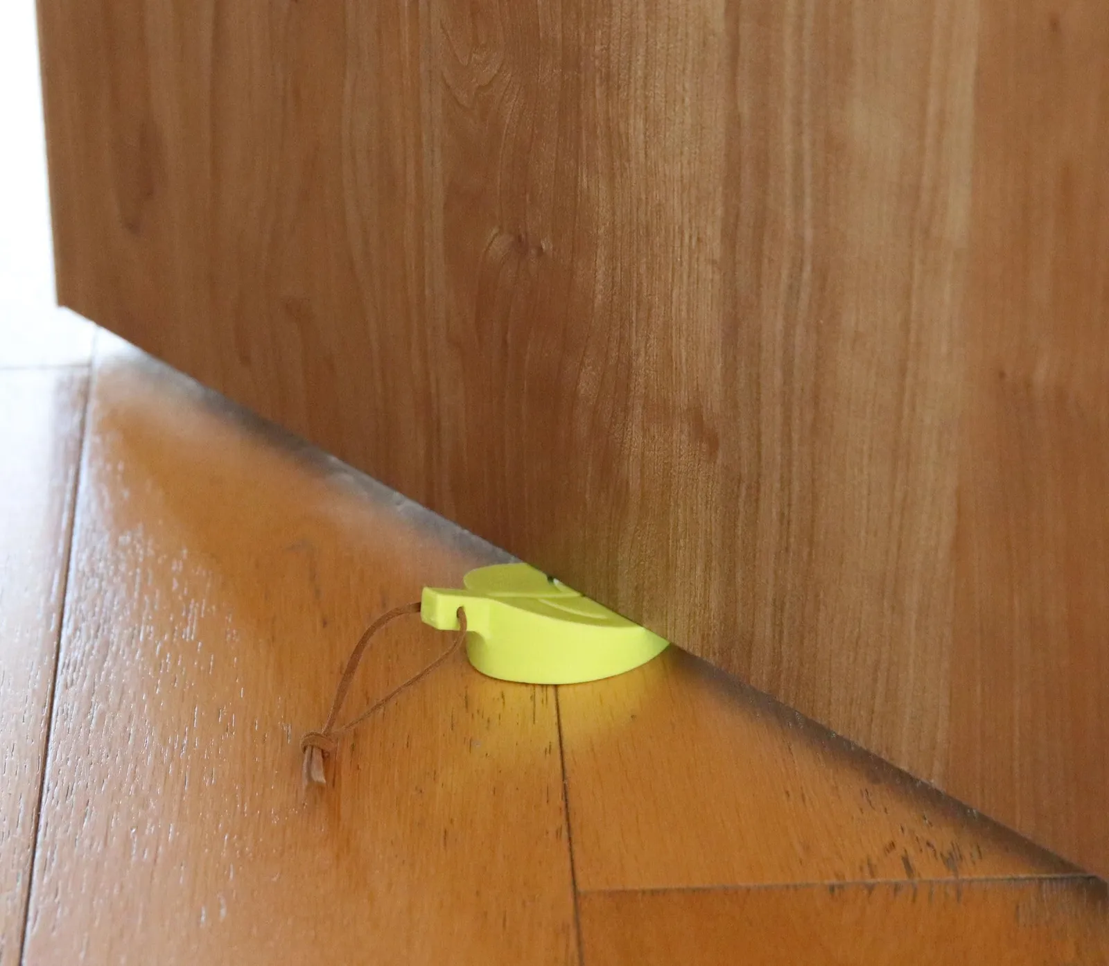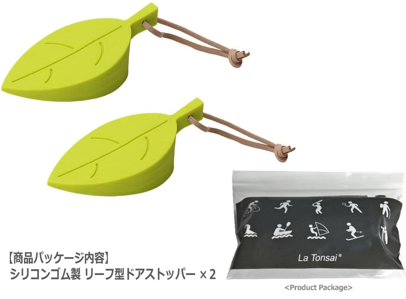 ご家庭やオフィスの部屋、寝室、キッチンの換気、洗濯や掃除などの家事、来客時など、扉の解放、一時固定にご使用頂ける葉っぱの形をしたリーフ型ドアストッパーセット(2個入り)です。先端が薄く奥にかけて厚みが増す傾斜のある形状でドアの下に差し込みやすくドアと床の隙間の奥までしっかり差し込めます。軽量・コンパクトで持ち運びや保管も場所を取らず、手軽で使い勝手に優れたアイテムです。ストラップ (持ち手) 付きで不使用時はフックやドアノブに掛けておけます。カラフルな葉型でインテリアとしても使用でき、お部屋をオシャレに演出してくれます。