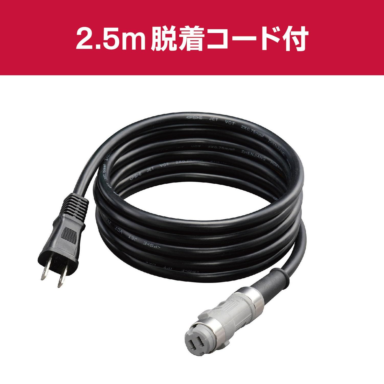 ●脱着式電源コード長さ:2.5m。