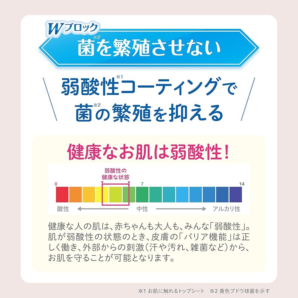 ママのお肌へのやさしさも考えて、お肌に触れる部分のシートにはお肌と同じ弱酸性シートを採用。