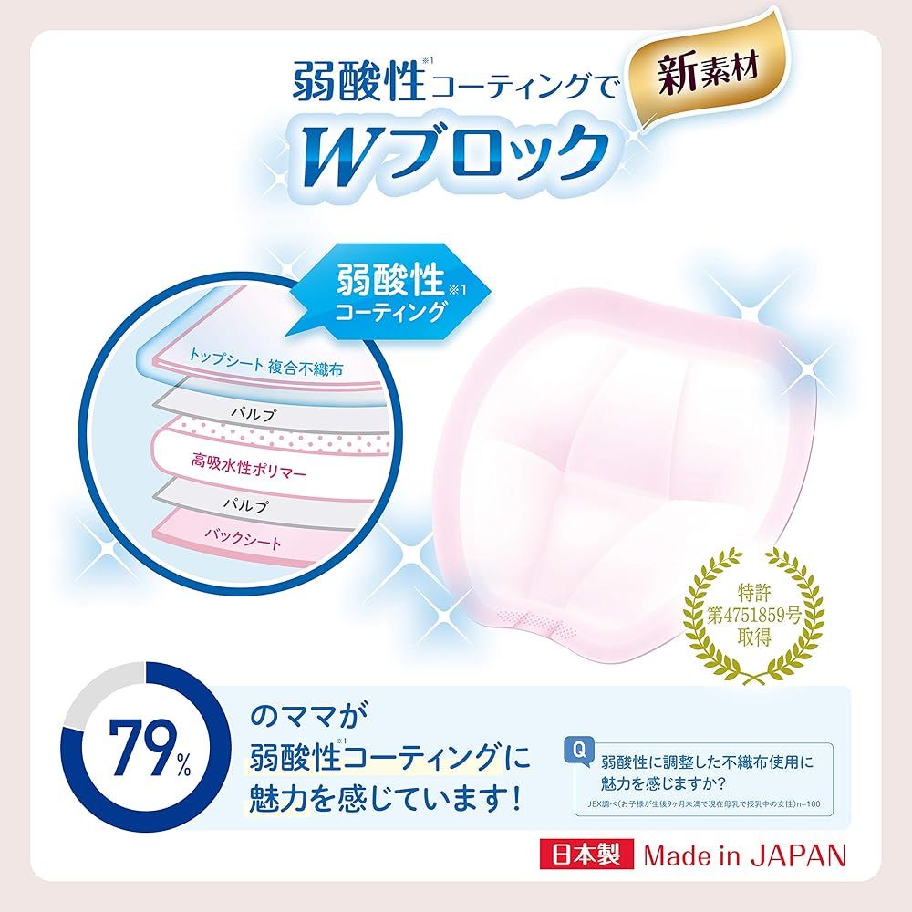 赤ちゃんにもママにもWでやさしい母乳パッドです。